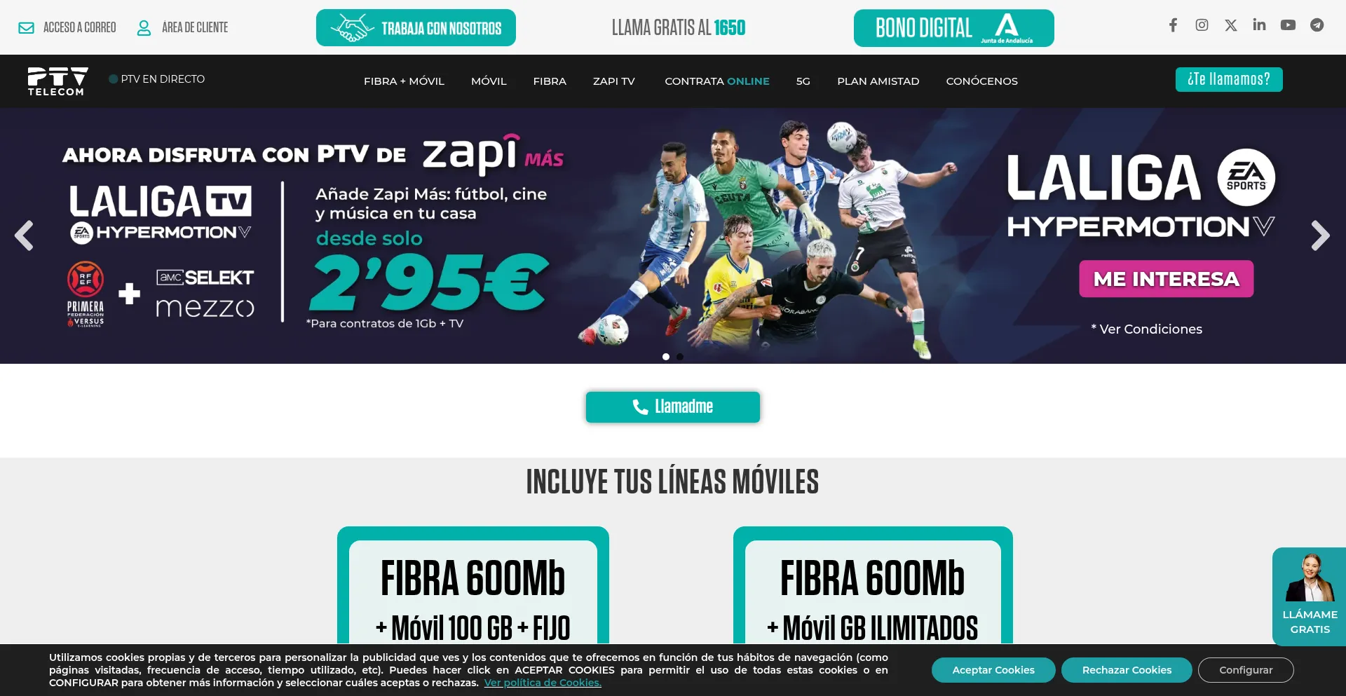 Fibra óptica 1Gb, Wi Fi, Tarifas Móviles 📱, Fijo y Zapi TV con +120 canales, SIN Permanencia ✅ Las mejores ofertas en PTV Telecom.