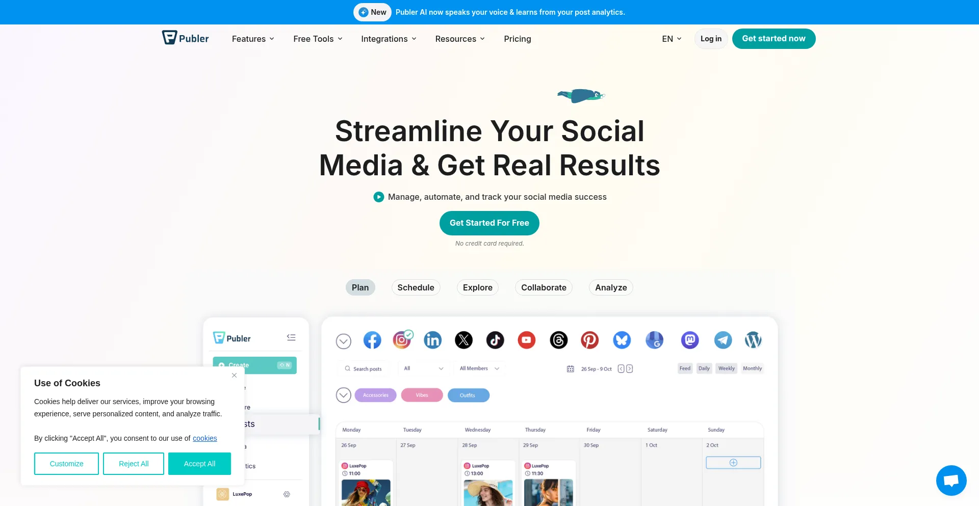 Boost your social media strategy with Publer’s suite of tools. Manage multiple accounts, schedule posts, collaborate with your team, and analyze performance—all in one place.