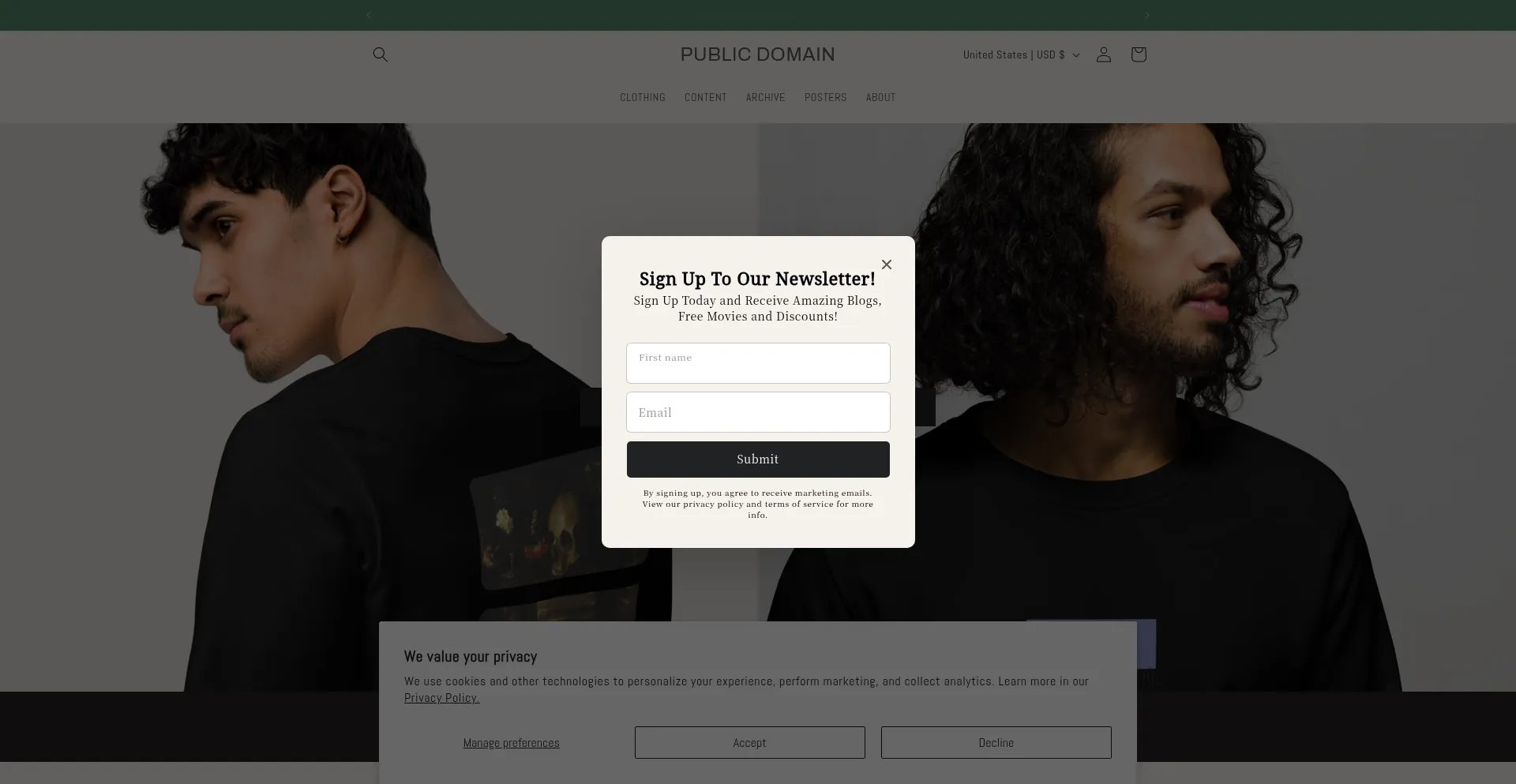 该网站实现符合GDPR或CCPA等隐私法规的cookie同意机制。这表明 publicdomainshop.com 遵守数据保护标准并为用户提供对个人数据收集实践的控制。