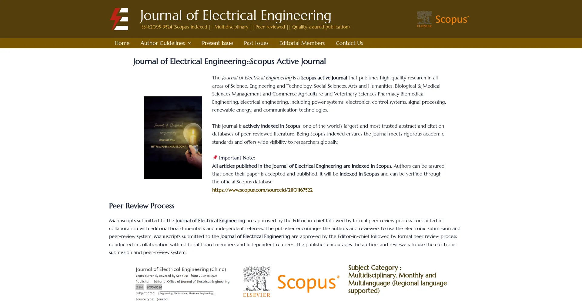 Journal of Electrical Engineering – ISSN:2095-9524 (Scopus-indexed || Multidisciplinary || Peer-reviewed || Quality-assured publication)