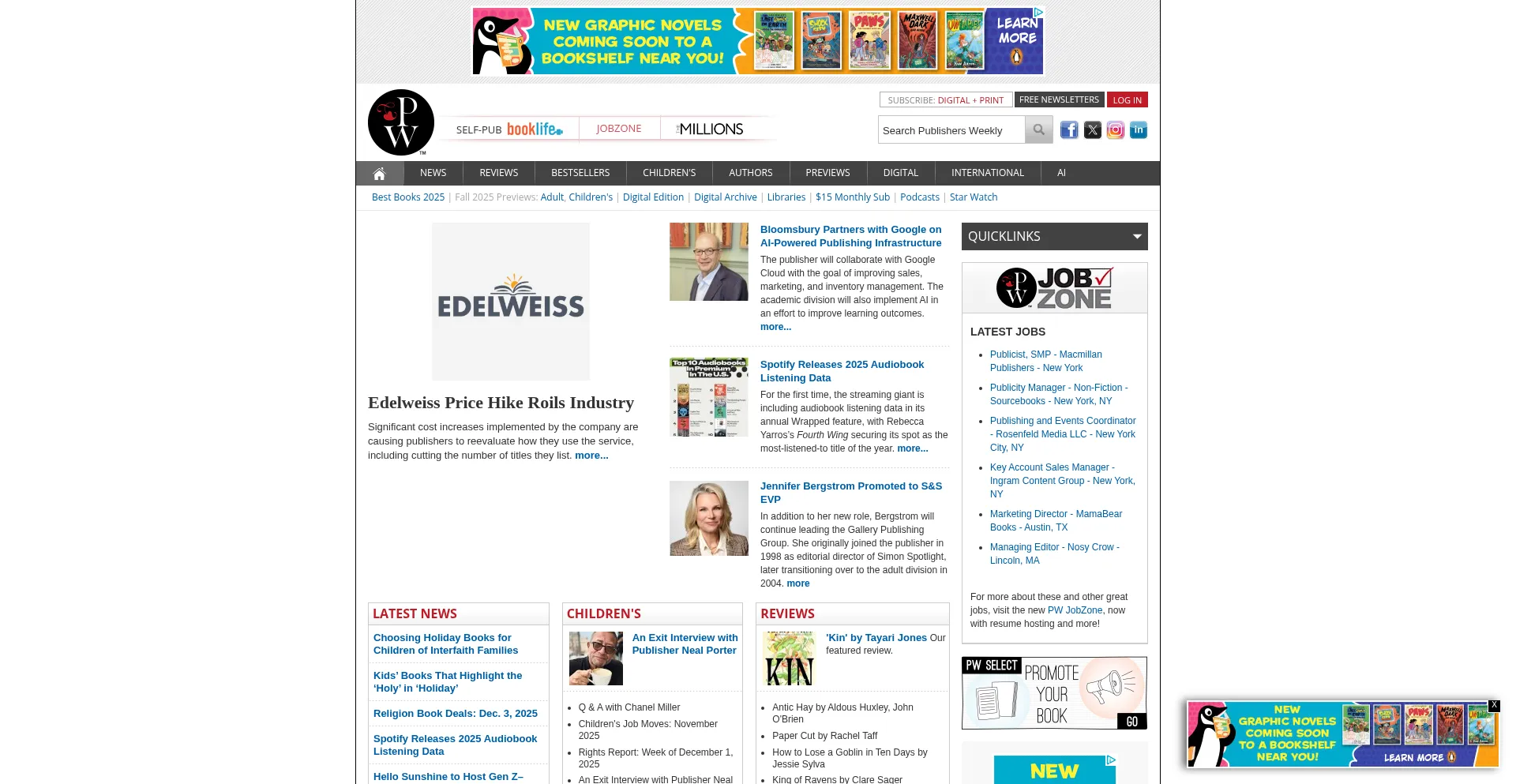 Publishers Weekly is the international news website of book publishing and bookselling including business news, reviews, bestseller lists, commentaries and more.