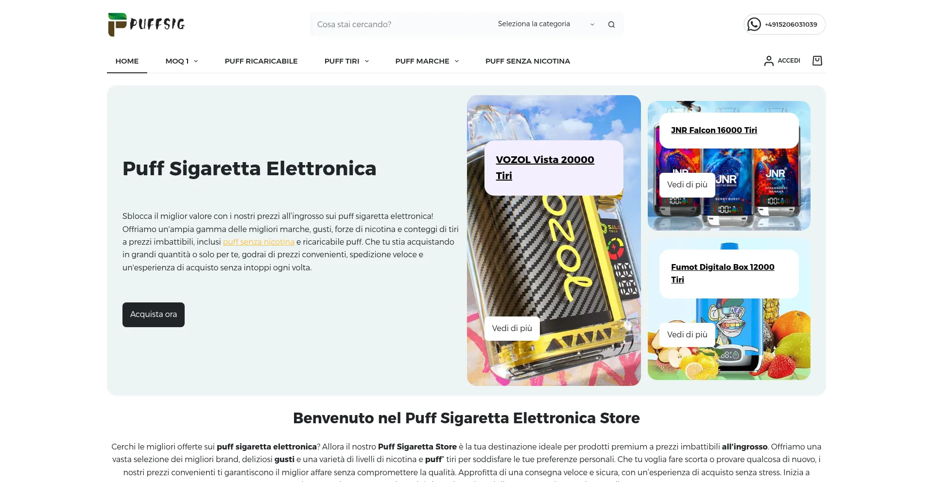 分析表明 puffsigaretta.it 作为电子商务平台运营,促进商品或服务的在线交易。该网站实现了购物车功能、支付处理系统和产品目录功能,这些是商业零售运营的典型特征。