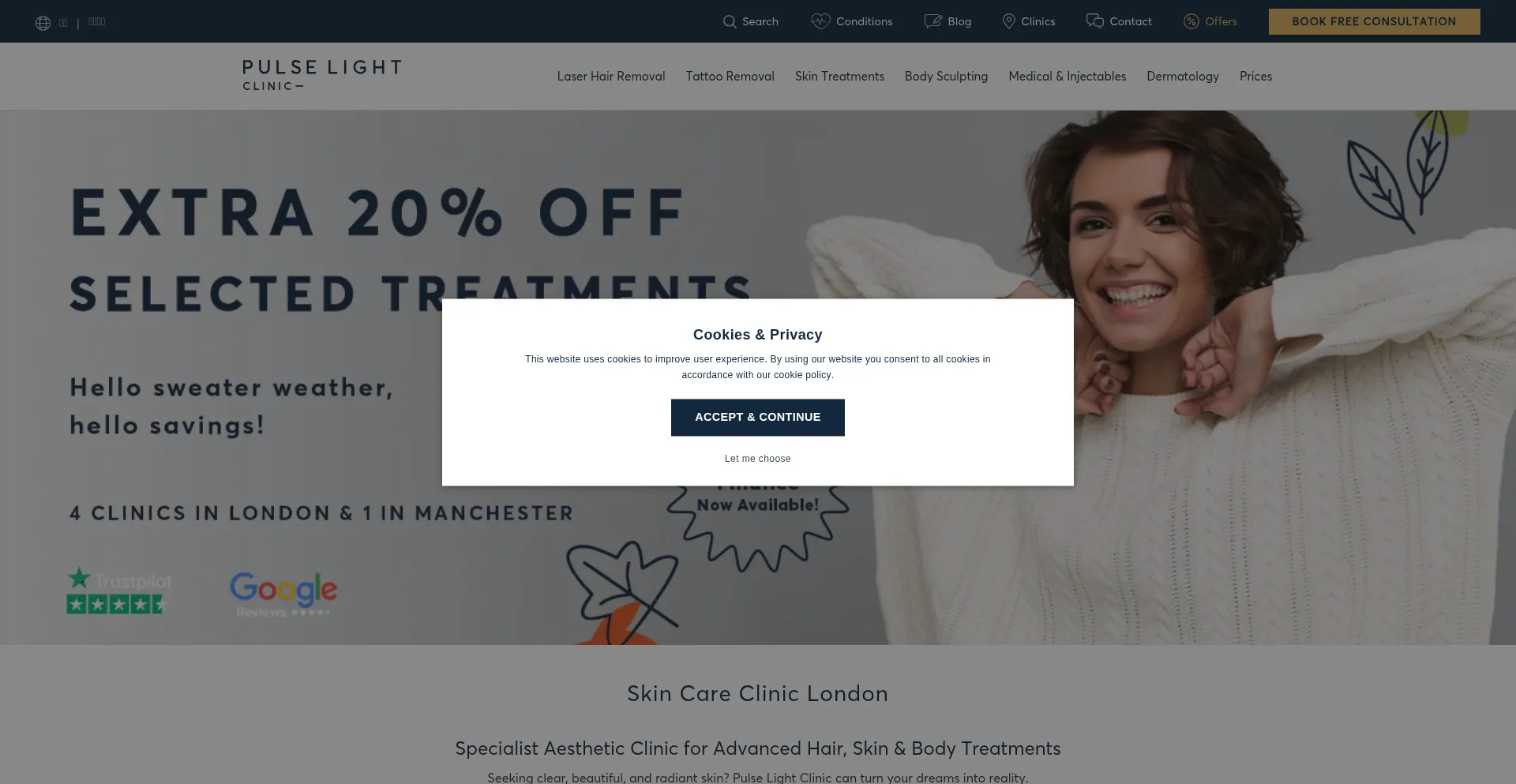 该网站实现符合GDPR或CCPA等隐私法规的cookie同意机制。这表明 pulselightclinic.co.uk 遵守数据保护标准并为用户提供对个人数据收集实践的控制。