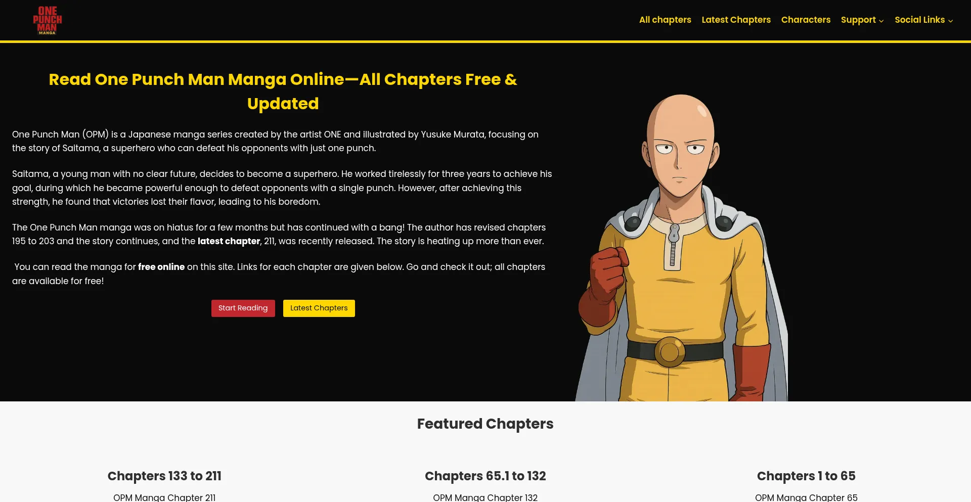 Read One Punch Man manga online! Latest chapters updated weekly. Fast, free, mobile-friendly reading with high-quality images and no paywalls.