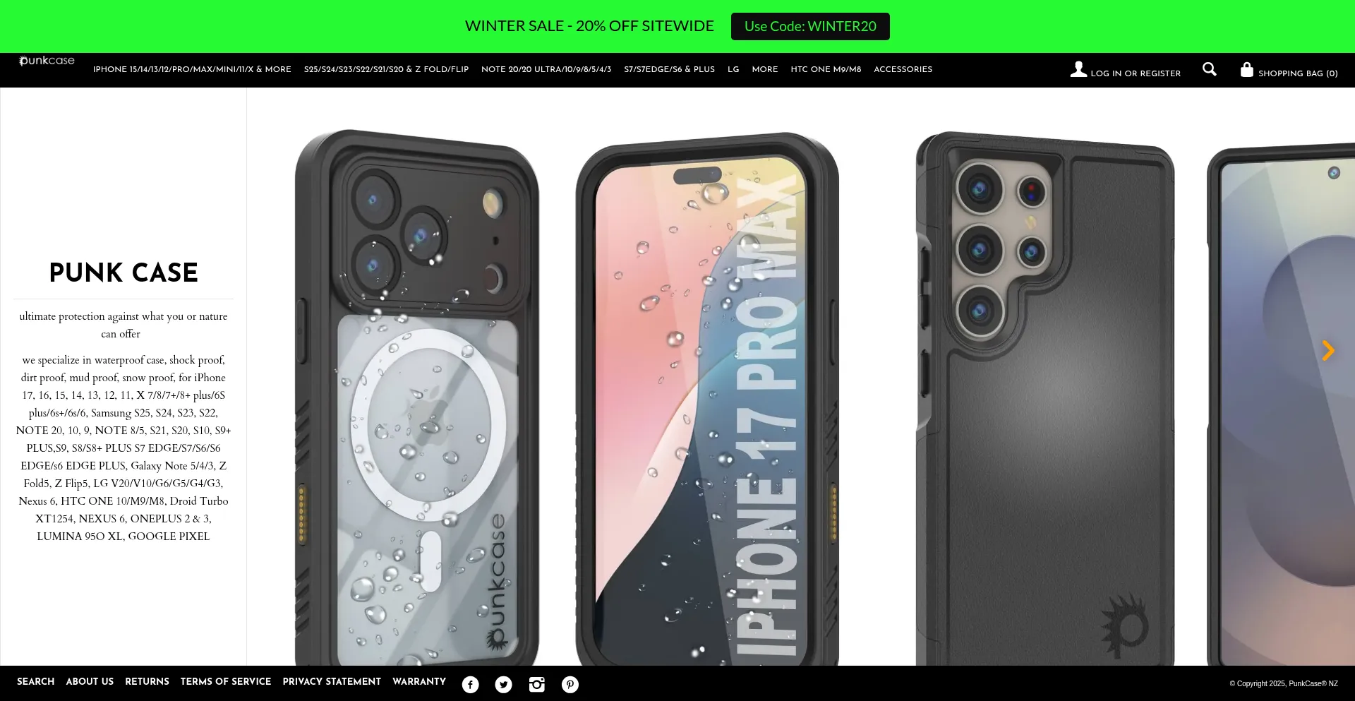 网站上存在社交媒体链接表明 punkcase.nz 在社交媒体上维护官方账户,这是可信度和参与度的积极信号。