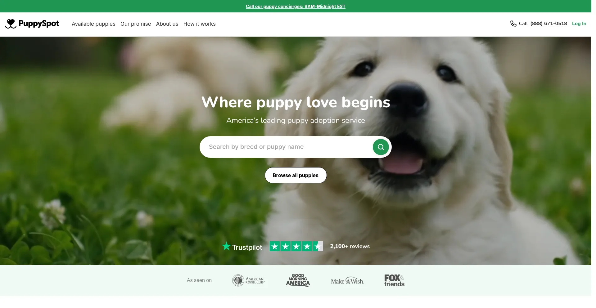 Find the perfect puppy for your family. From breed selection to training to long-term healthcare, PuppySpot will be your first and last puppy stop.