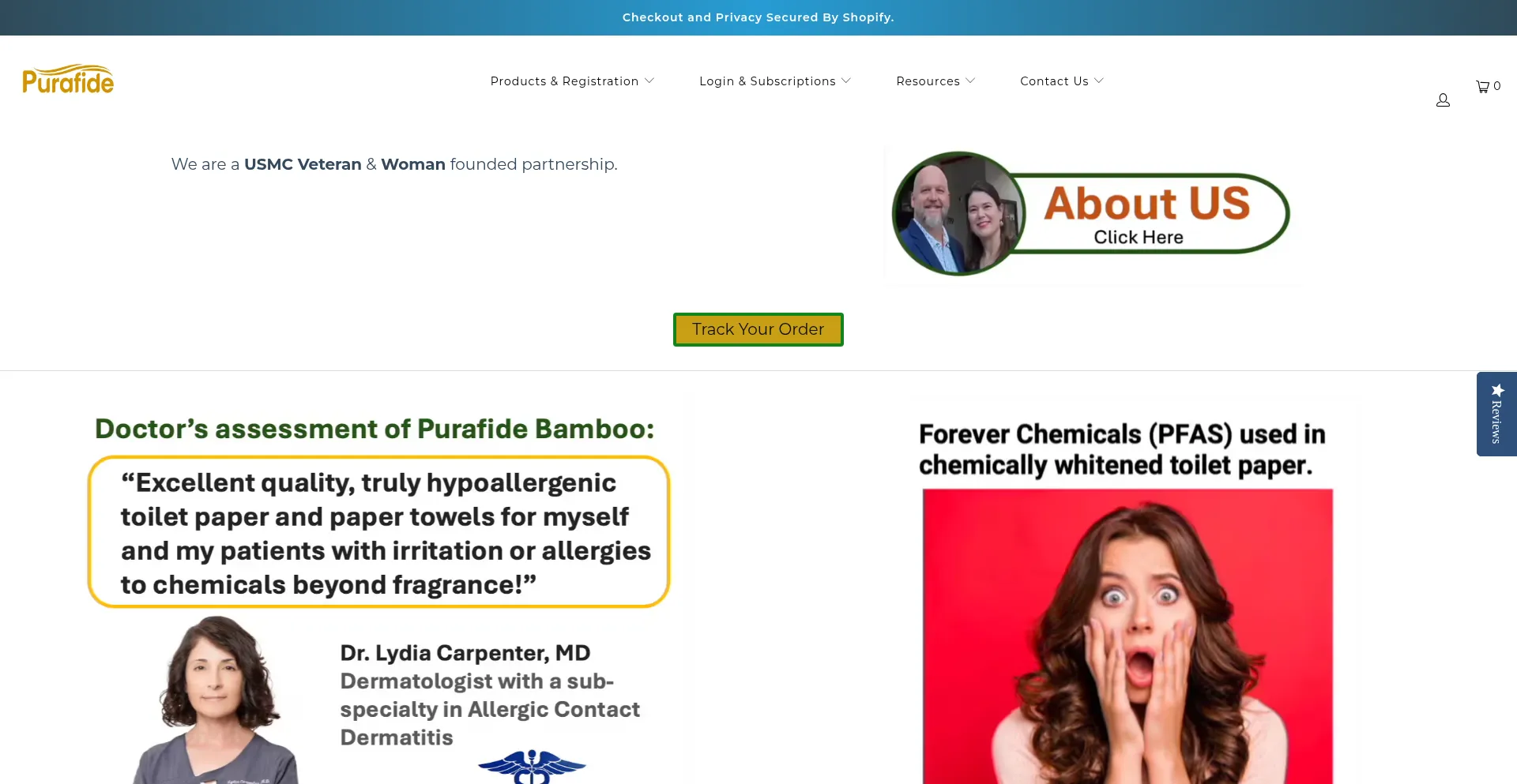 Purafide Bamboo toilet paper, bamboo paper towels, H13 HEPA air purifiers.