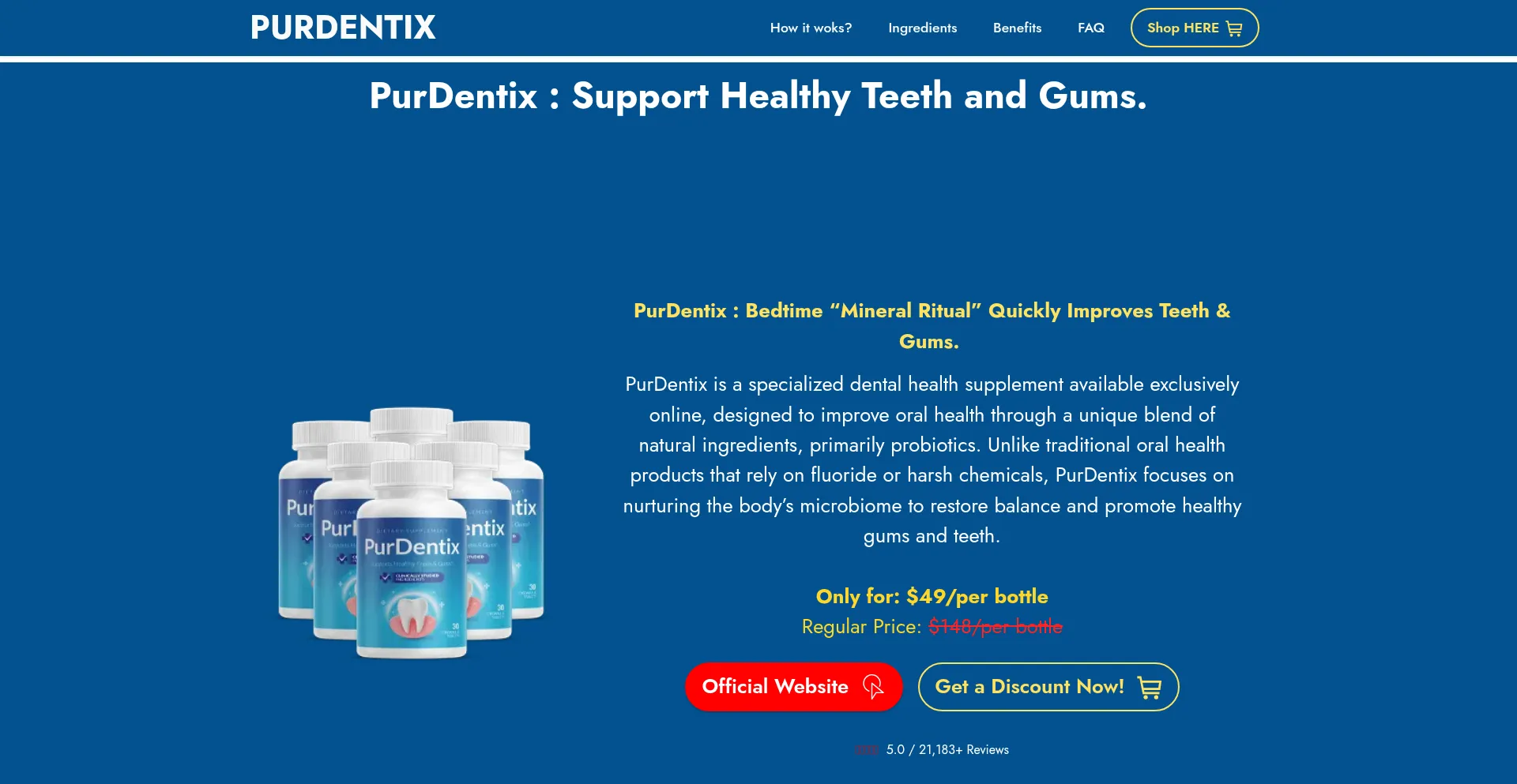 PurDentix is a specialized dental health supplement available exclusively online, designed to improve oral health through a unique blend of natural ingredients, primarily probio...
