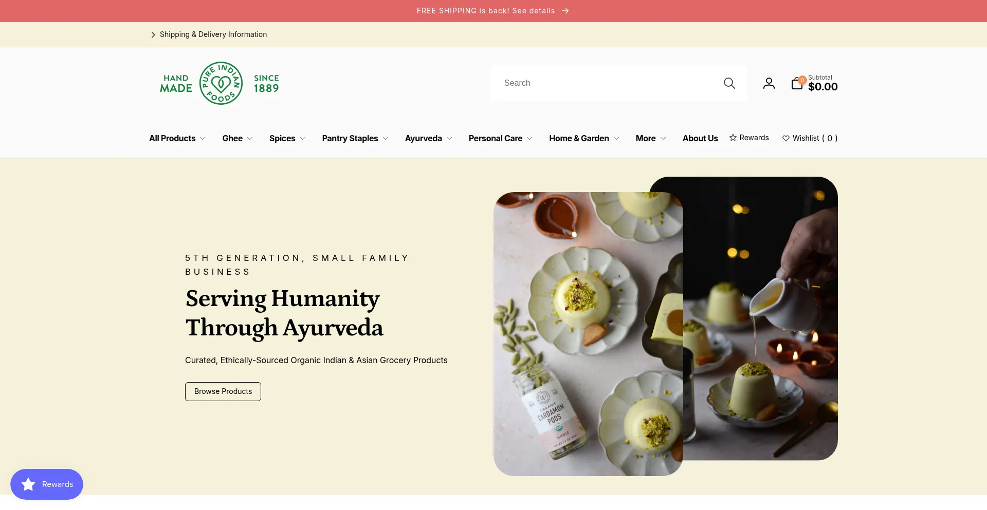 Curated, Ethically-Sourced Organic Indian & Asian Grocery Products from a 5th Generation Family-Owned Business. Providing high-quality ghee from grassfed cows since 1889, as wel...