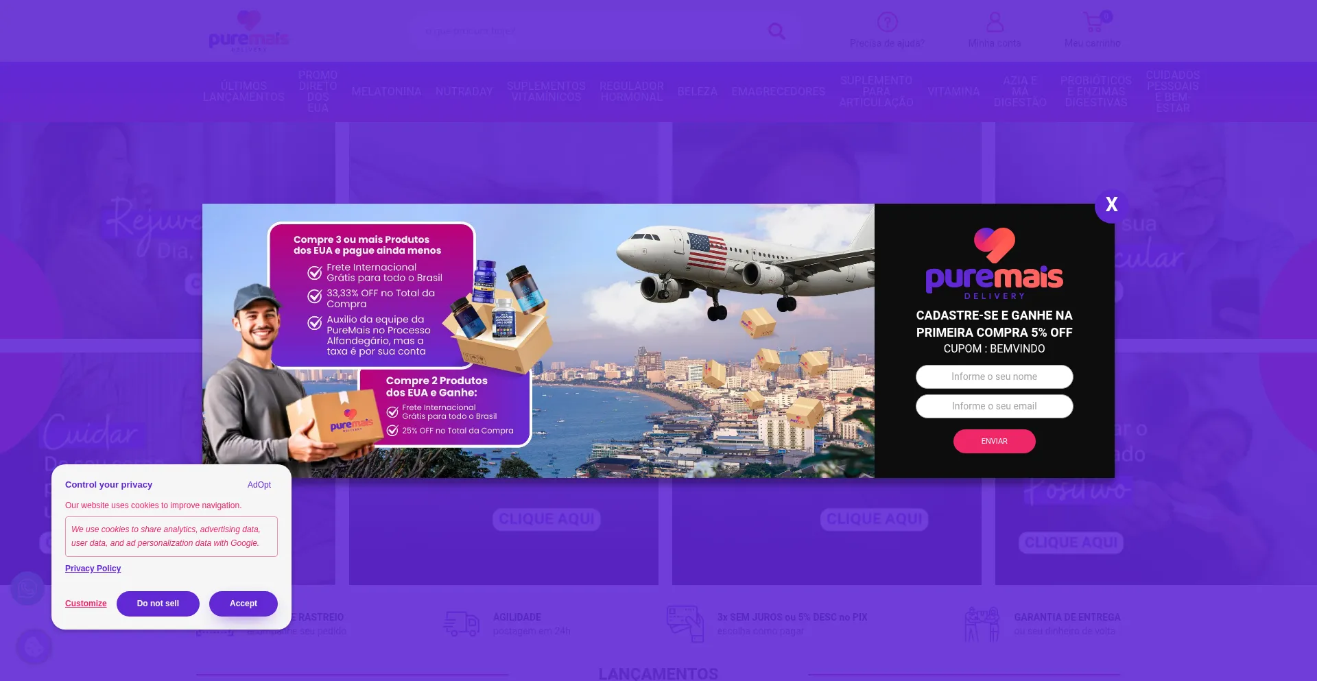该网站实现符合GDPR或CCPA等隐私法规的cookie同意机制。这表明 puremais.com.br 遵守数据保护标准并为用户提供对个人数据收集实践的控制。