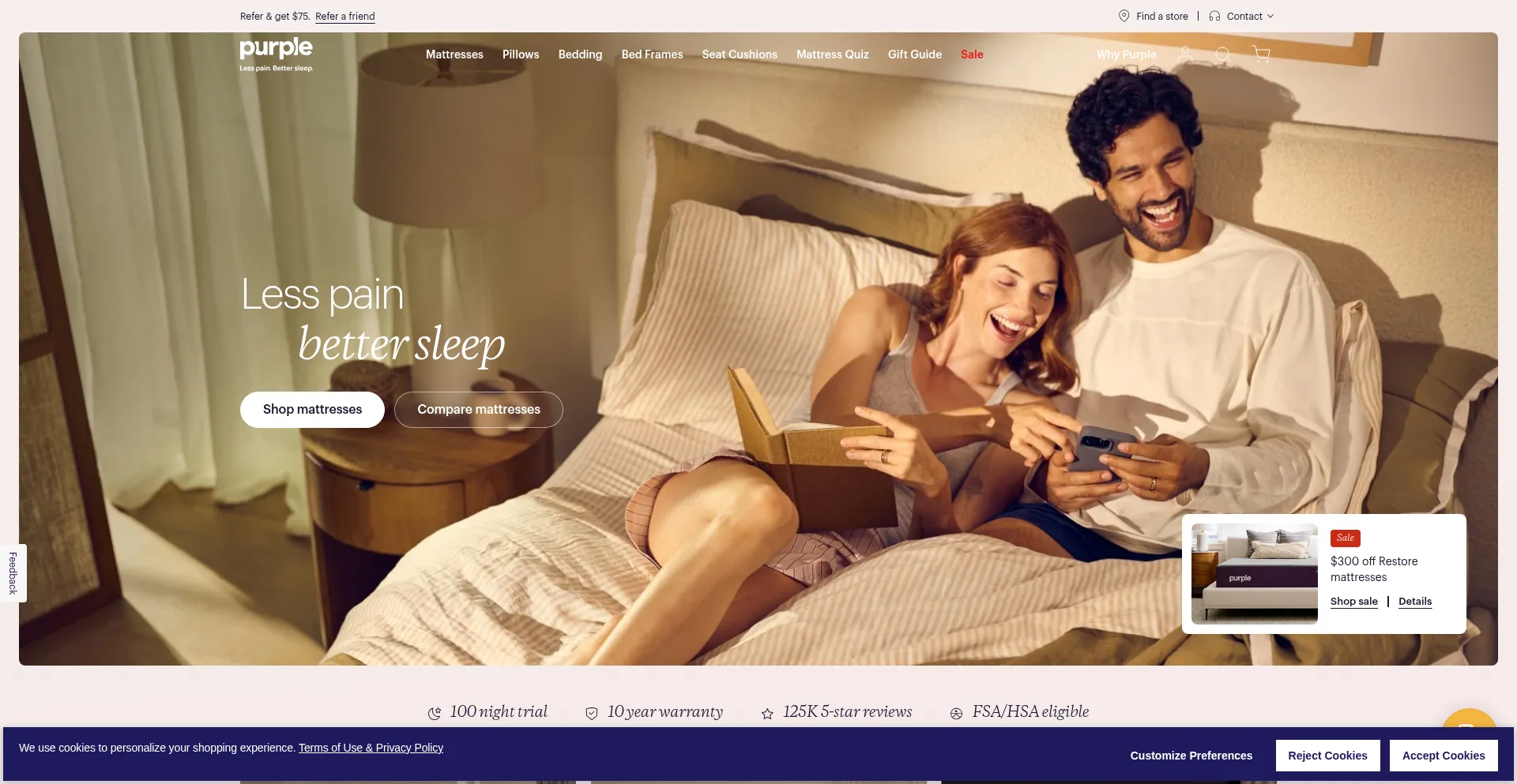 Shop Purple Mattresses: Less pain. Better sleep.