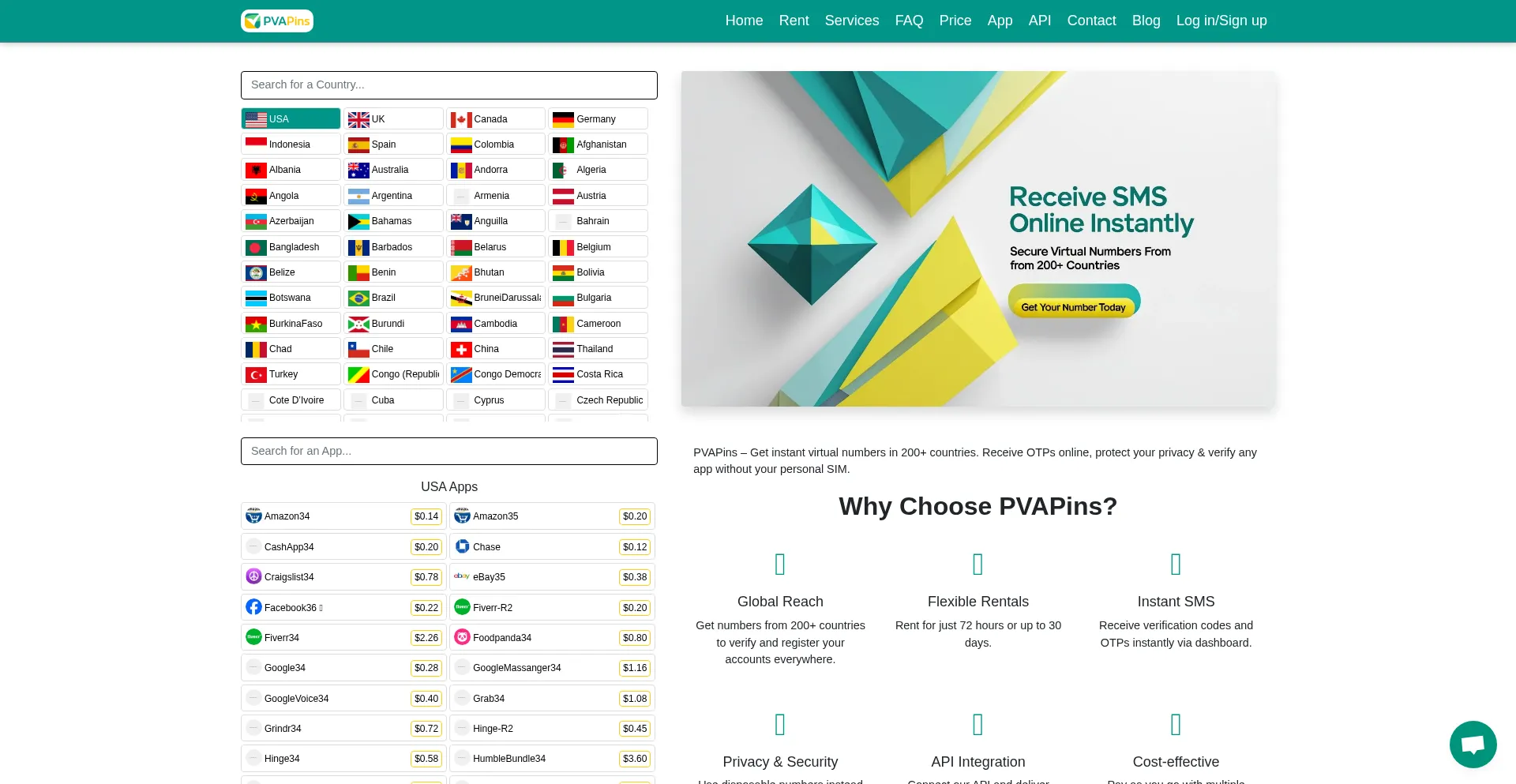 Receive SMS Online with Temporary Phone Numbers – PVAPins.com