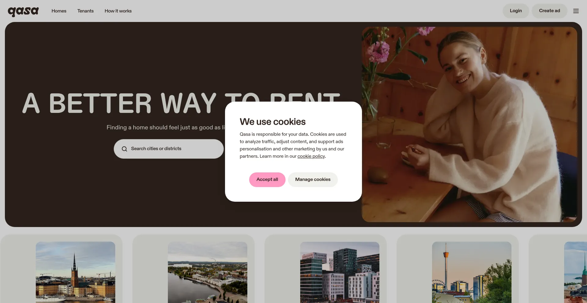 Qasa is the modern way to rent and let a home. All landlords are verified and we will help you create a solid rental agreement. Welcome to Qasa!