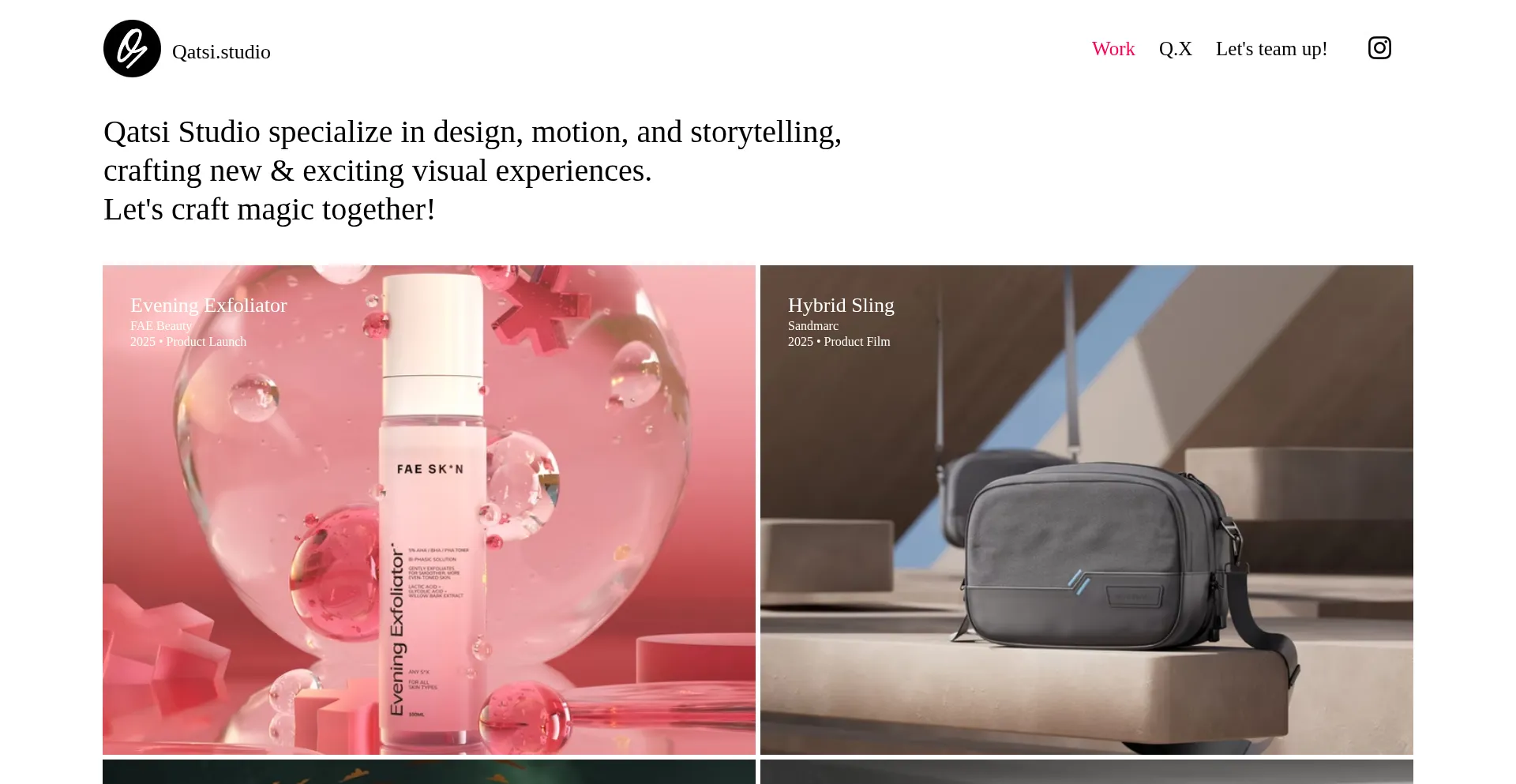 Qatsi Studio specialize in design, motion, and storytelling, crafting new & exciting visual experiences. Join us, let's craft magic together!