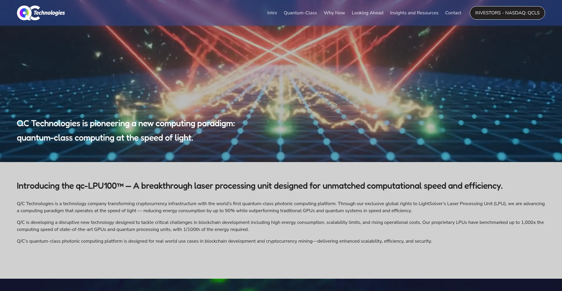 Q/C Technologies | Quantum-Class Photonic Computing & Laser Processing Units for Blockchain