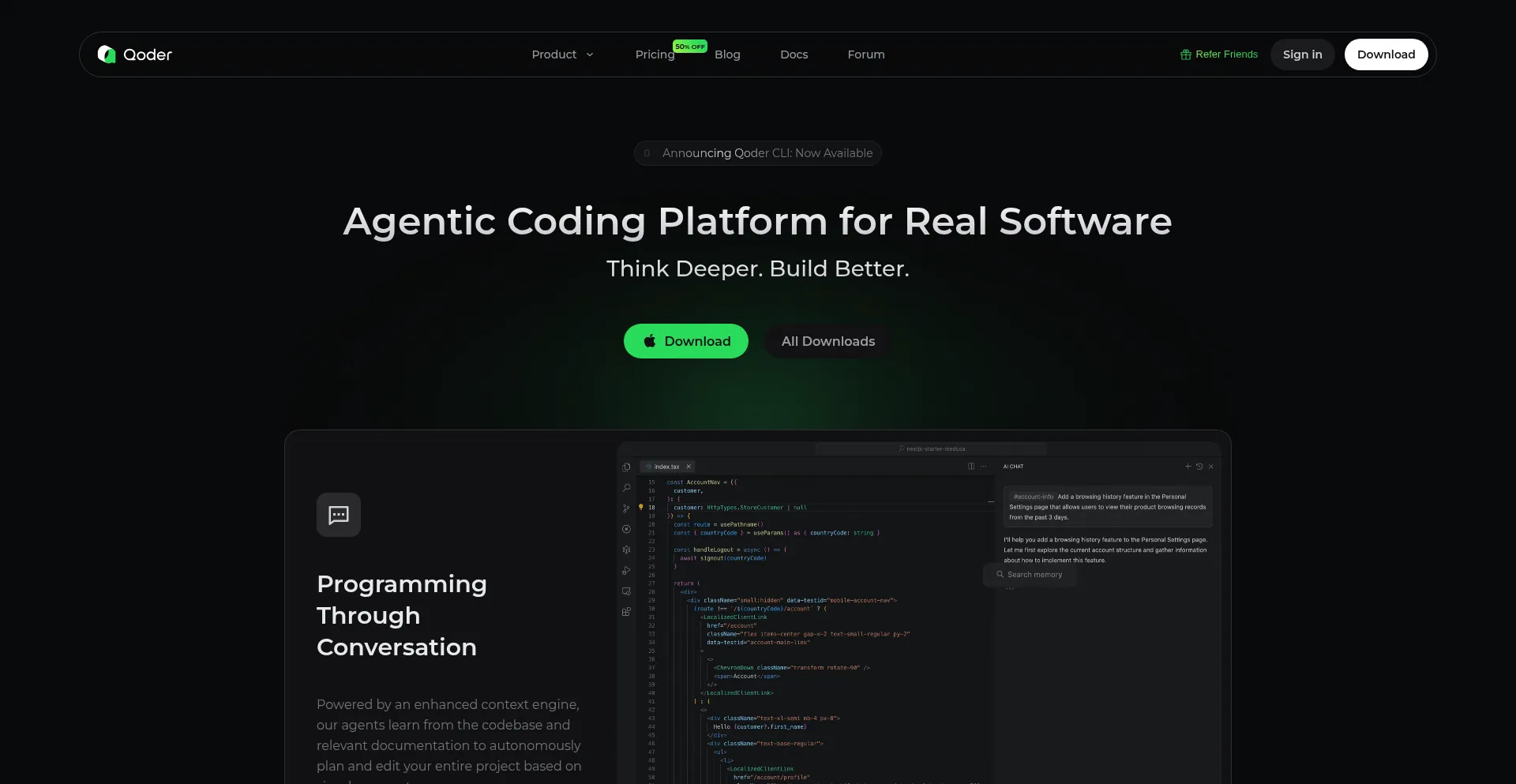 Qoder is an agentic coding platform designed for real software development. It seamlessly integrates enhanced context engineering with intelligent agents to gain a comprehensive...