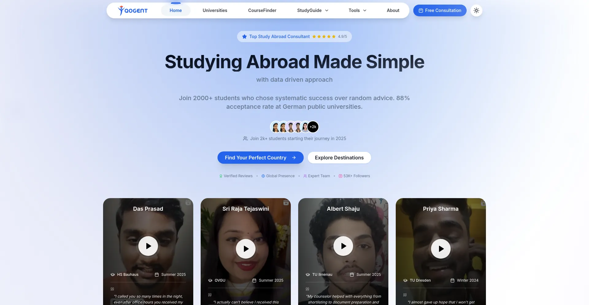 Join 2000+ students who chose systematic success over random advice. 88% acceptance rate at German public universities. Expert guidance for 51+ countries with zero university co...