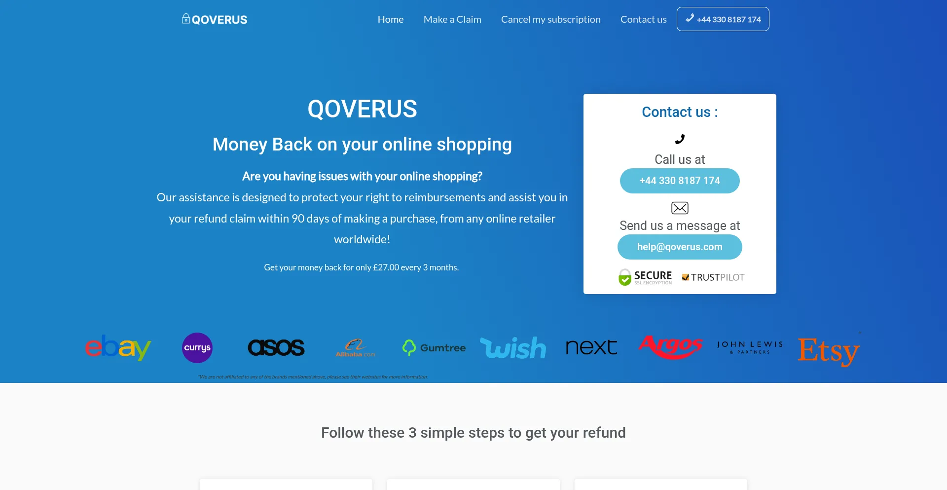 Qoverus.com 是一个欺诈性电子商务网站,通过欺骗性策略收取付款并窃取个人数据。