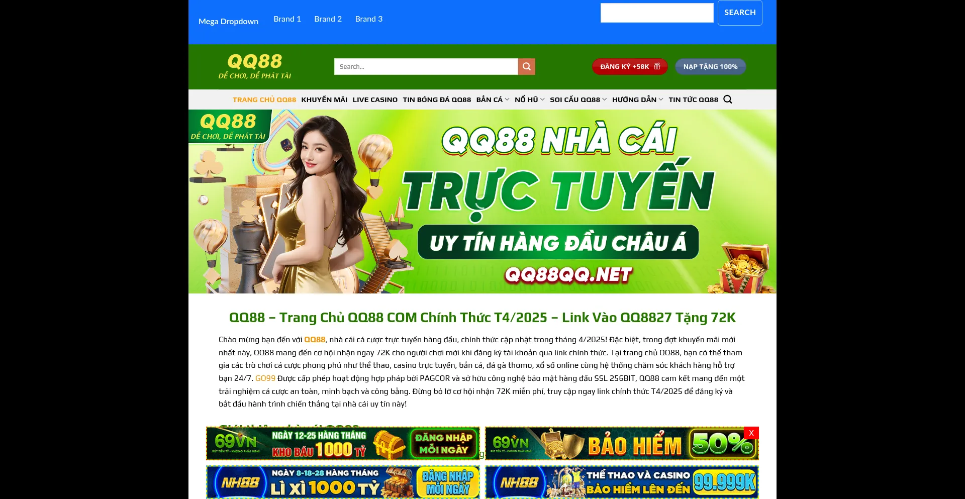 QQ88 – Nhà cái cá cược hàng đầu 2025 với hơn 5 triệu thành viên. Bảo mật cao, tỷ lệ trả thưởng lên đến 98%, hỗ trợ 24/7, nhiều khuyến...