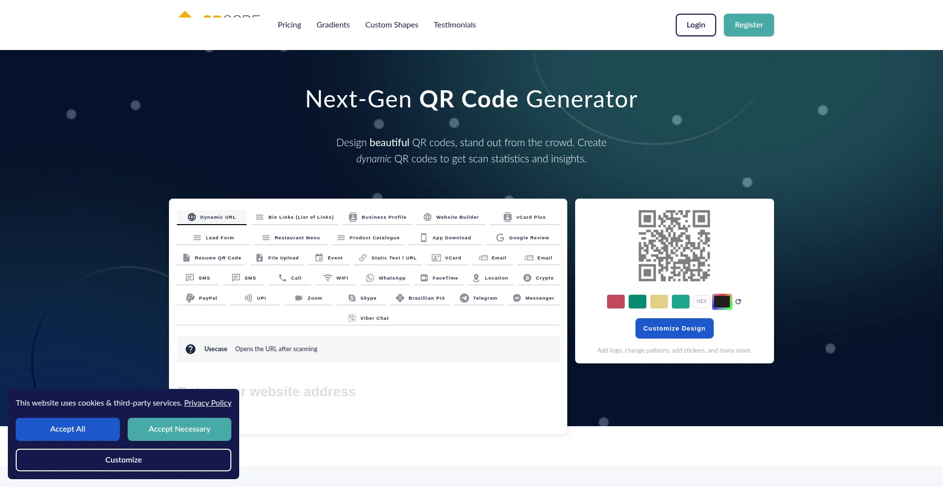 该网站实现符合GDPR或CCPA等隐私法规的cookie同意机制。这表明 qrcode.org 遵守数据保护标准并为用户提供对个人数据收集实践的控制。