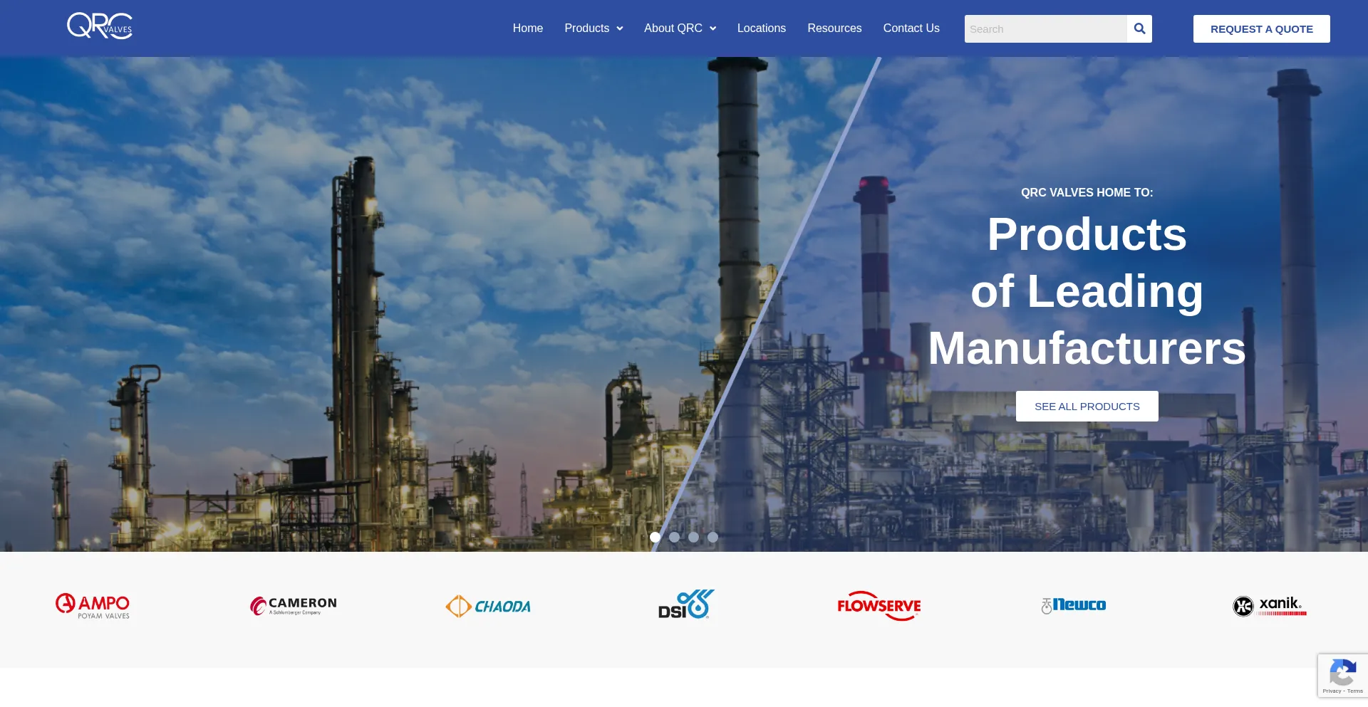 This is the home page of the website of QRC Valves, a major distributor of downstream valves from industry-leading manufacturers.