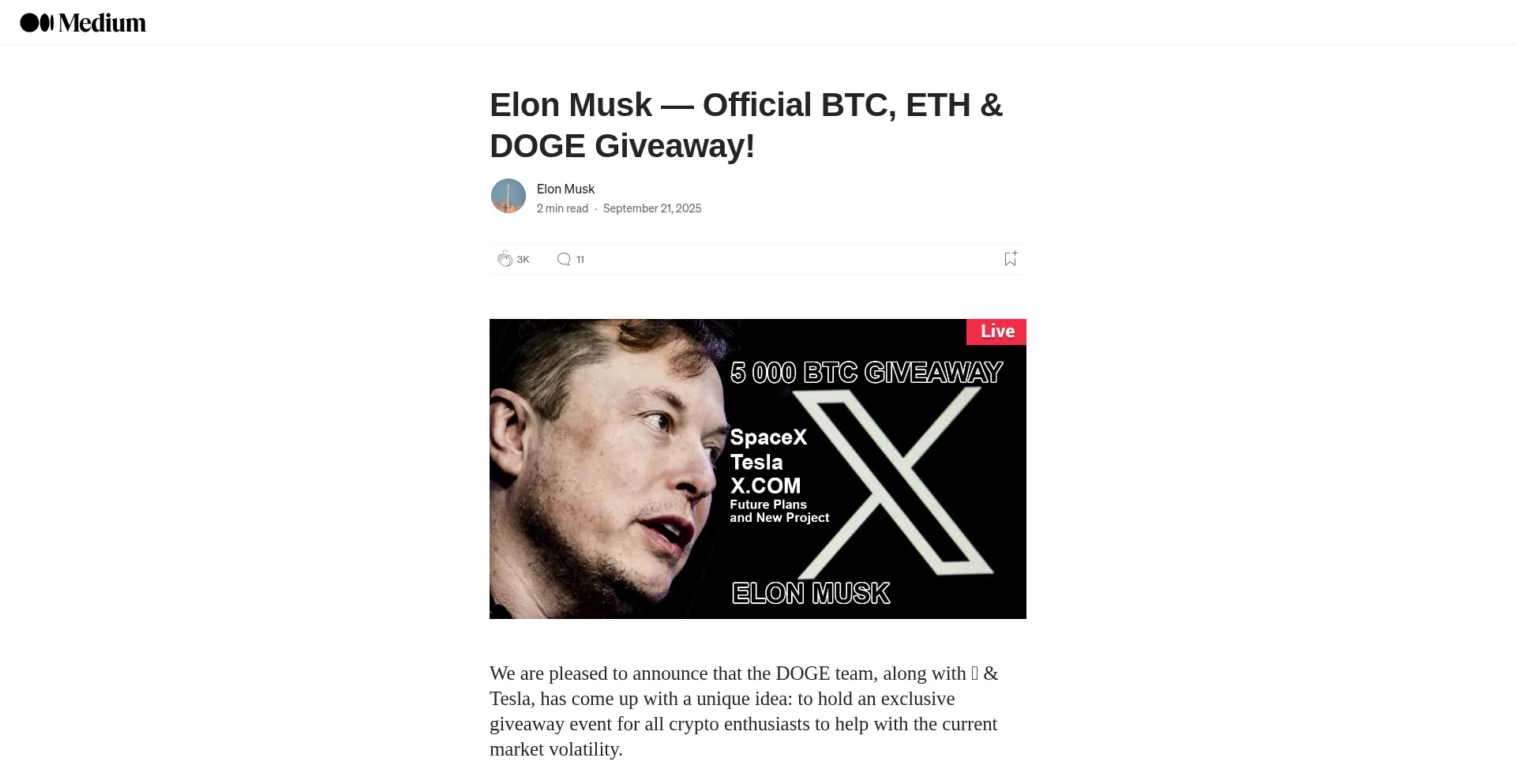 Elon Musk — Official BTC, ETH & DOGE Giveaway!