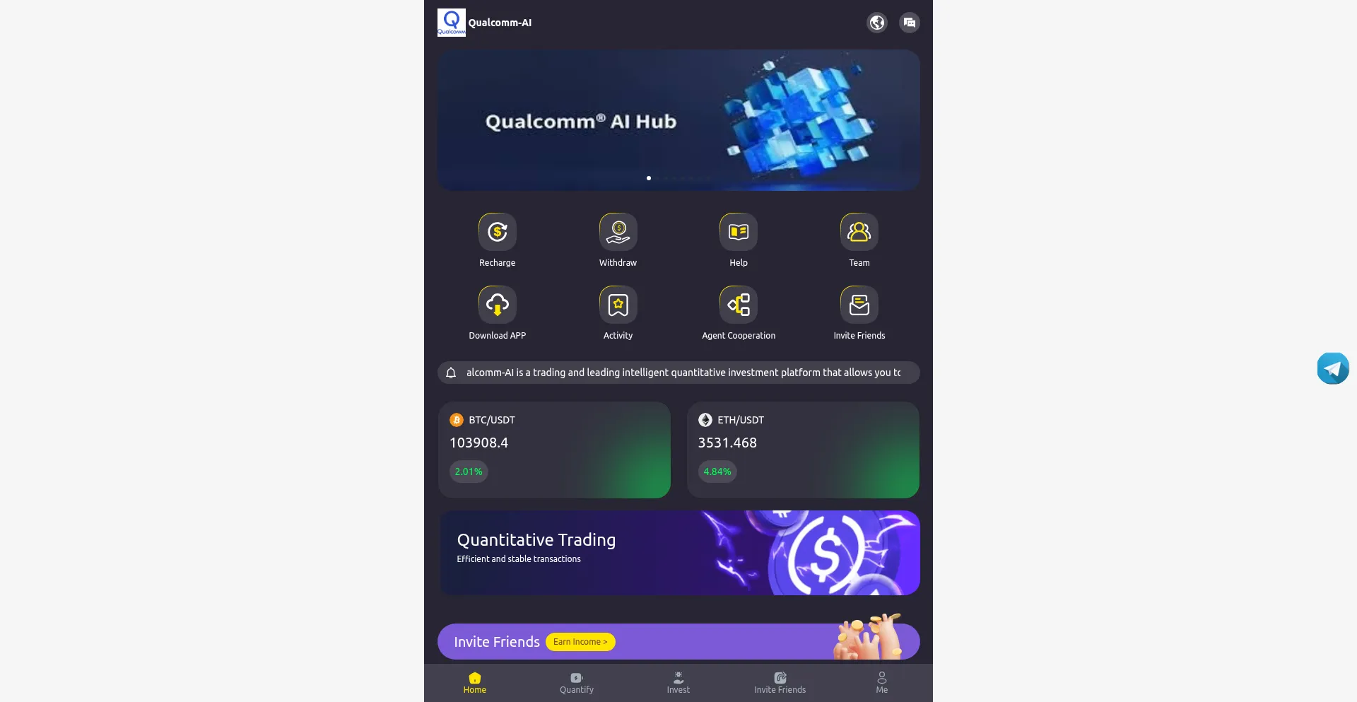 Qualcommai.vip 运营欺诈性金融平台,推广具有不现实回报承诺的欺骗性投资机会。安全分析表明该平台采用与 庞氏骗局 和预付费欺诈一致的策略,旨在提取用户资金和个人信息。