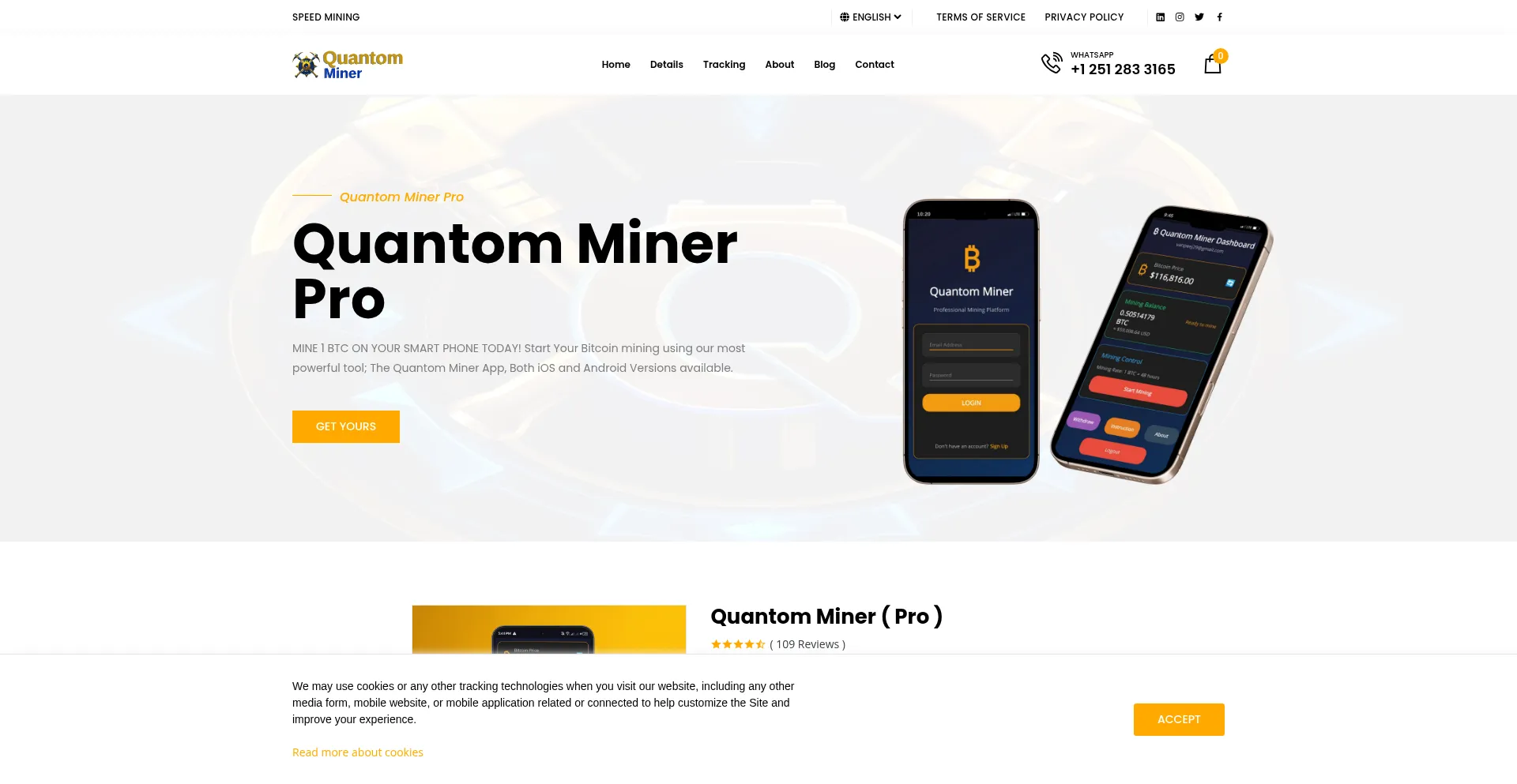 网站 quantommining.com 可能提供云挖矿服务或加密货币挖矿投资。一些平台提供合法的挖矿租赁服务,而其他平台可能使用虚假的挖矿仪表板来显示无法提取的虚拟收益。