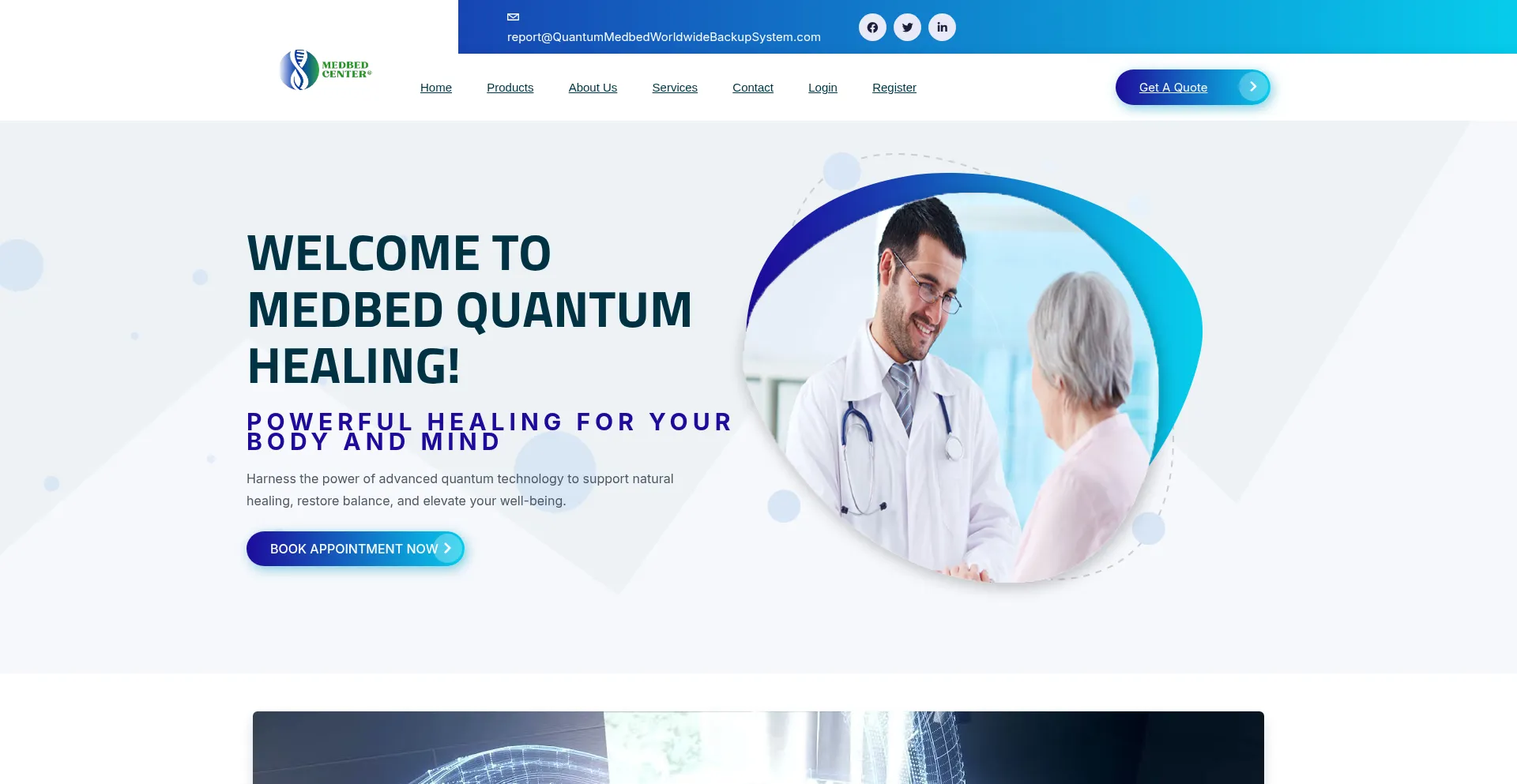 分析显示 quantummedbedworldwidebackupsystem.com 显示社交媒体图标或链接,但不连接到合法的社交媒体档案。这种欺骗性做法通常用于创造虚假合法性,代表需要立即谨慎的欺诈意图的重要指标。