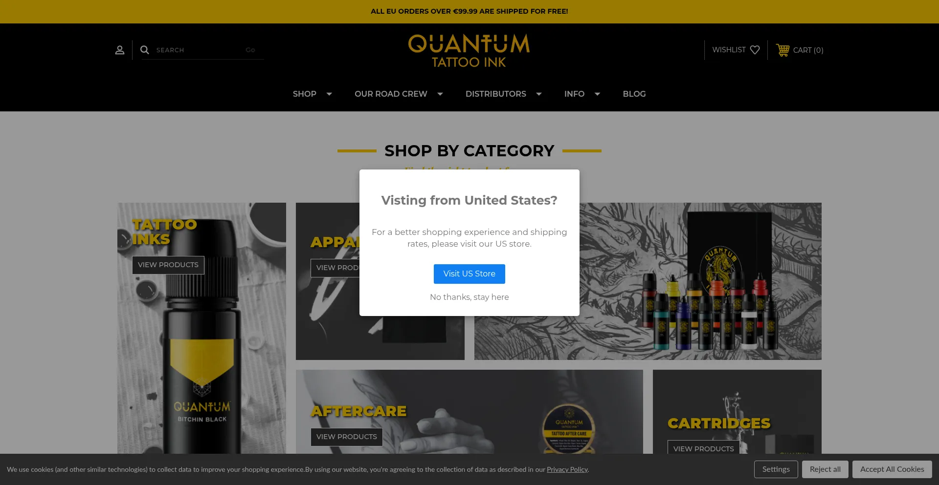 该网站实现符合GDPR或CCPA等隐私法规的cookie同意机制。这表明 quantumtattooink.eu 遵守数据保护标准并为用户提供对个人数据收集实践的控制。
