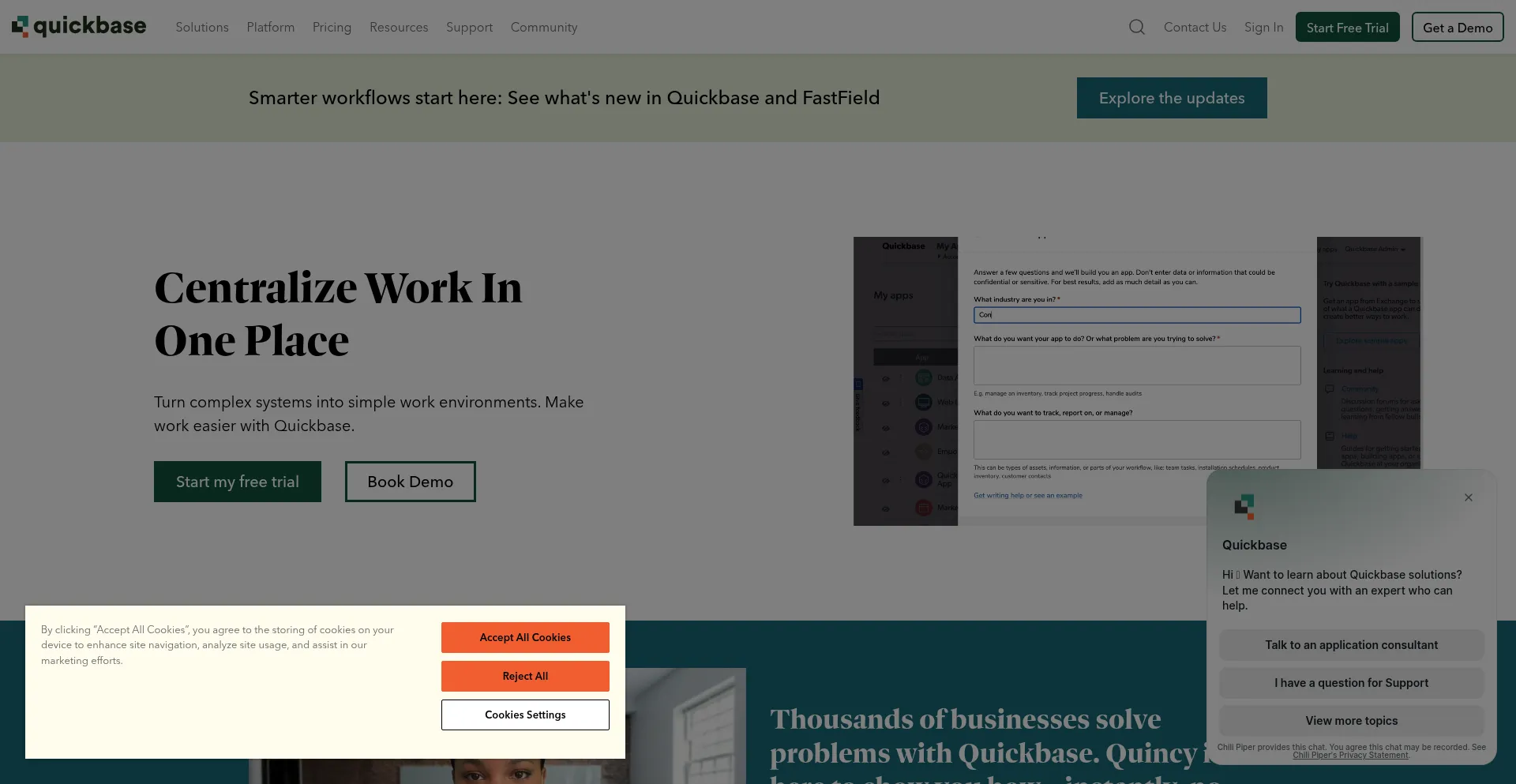 该网站实现符合GDPR或CCPA等隐私法规的cookie同意机制。这表明 quickbase.com 遵守数据保护标准并为用户提供对个人数据收集实践的控制。