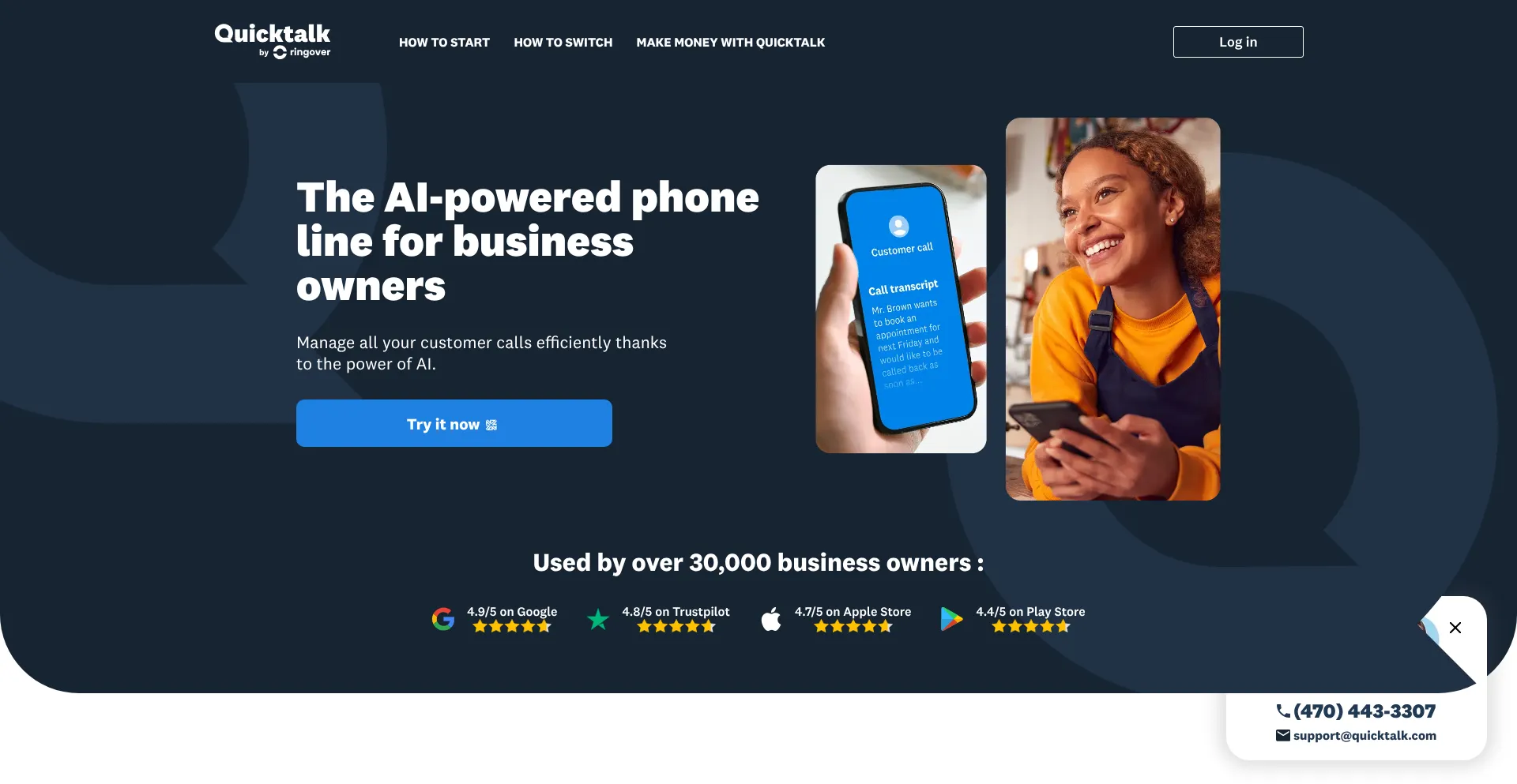 Get a phone number for your startup and use a very simple phone system from any device. Try Quicktalk online or call us (470) 45 6787.
