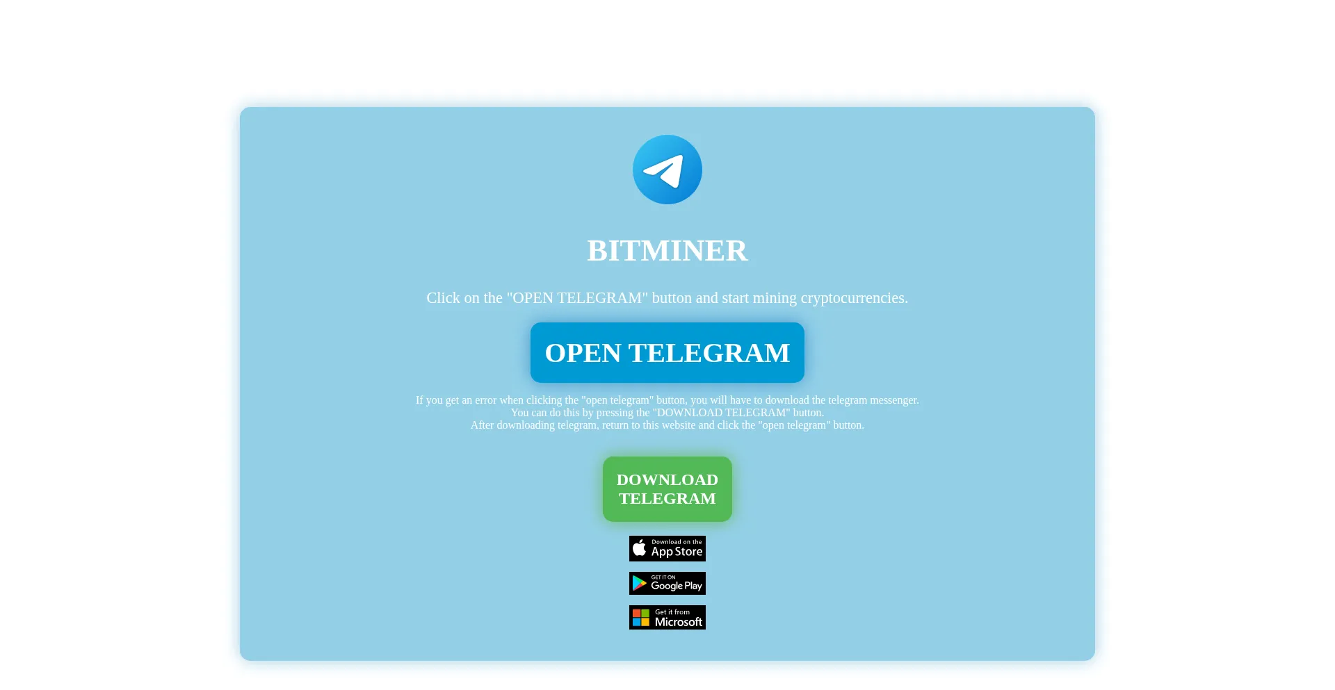 Click on the "OPEN TELEGRAM" button and start mining cryptocurrencies.