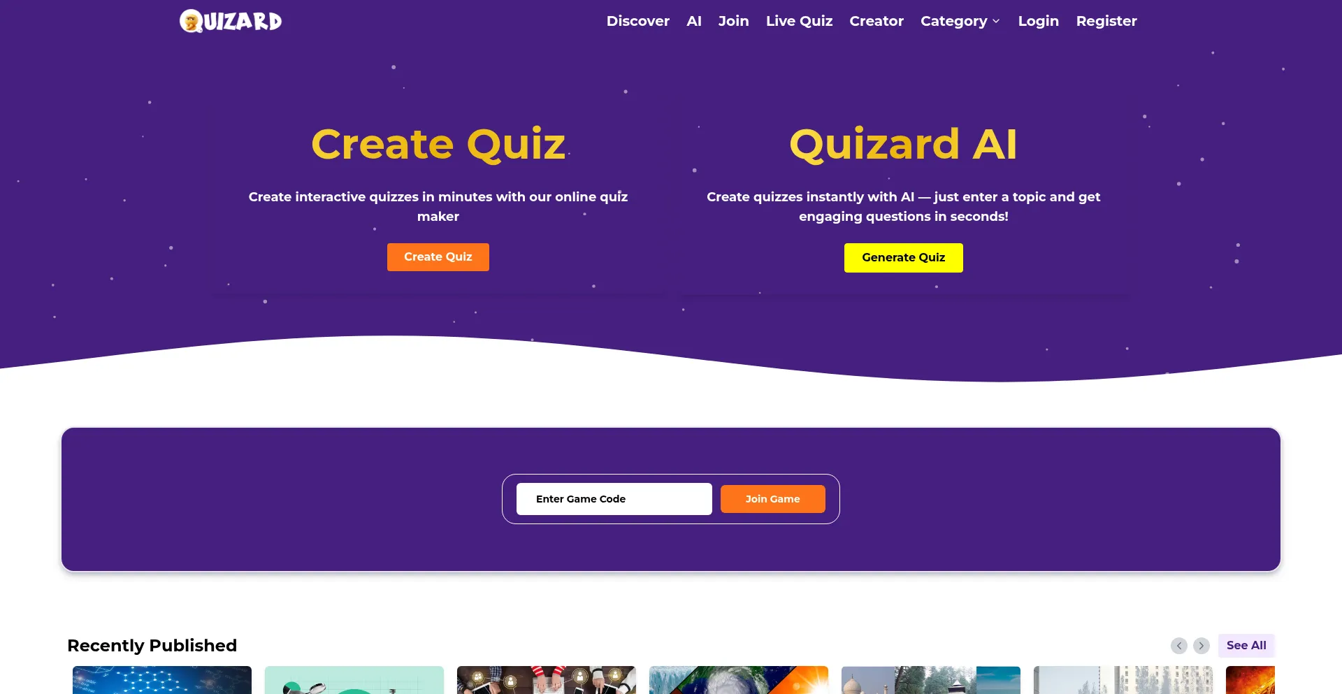 Make learning fun with Quizard! Create quizzes in seconds, play in exciting game modes like Dino Mode, and challenge friends across tons of topics.