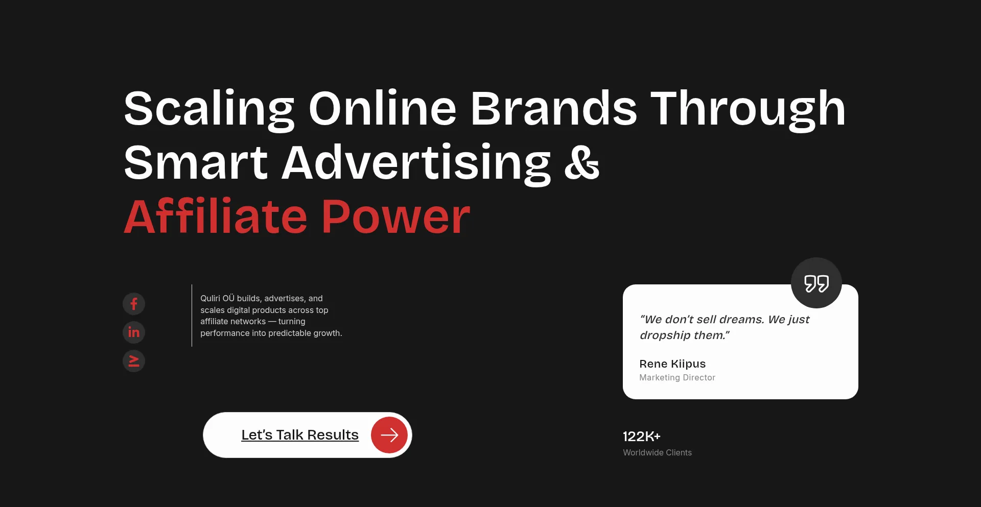 Quliri OÜ builds, advertises, and scales digital products across top affiliate networks — turning performance into predictable growth.