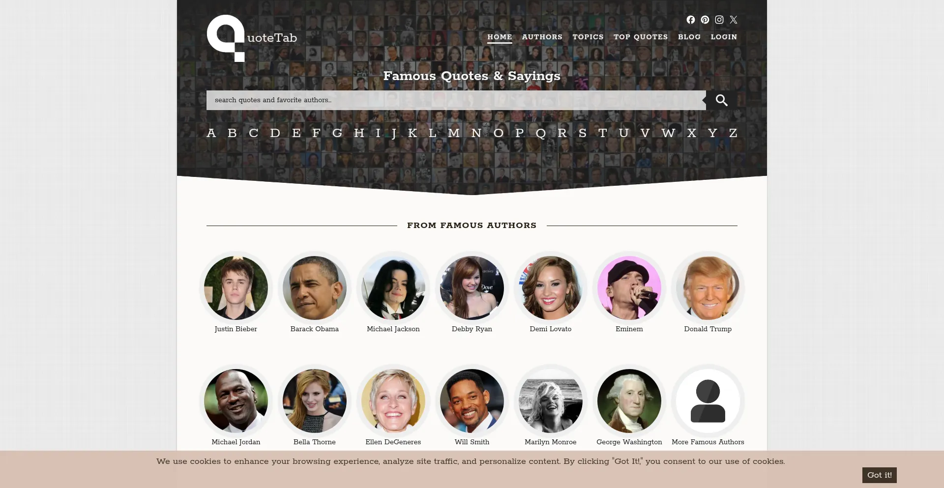 网站上存在社交媒体链接表明 quotetab.com 在社交媒体上维护官方账户,这是可信度和参与度的积极信号。