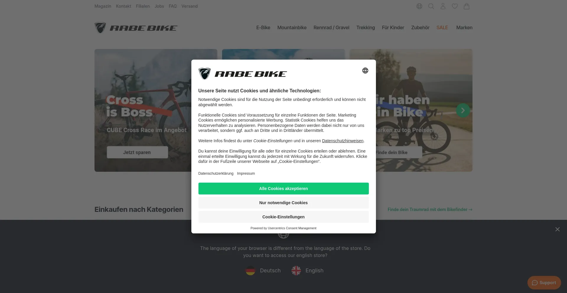该网站显示来自认可机构的安全认证或信任印章,表明符合安全标准、数据保护协议或行业法规。来自 rabe-bike.de 的信任印章表明遵守已建立的安全实践和运营透明度。