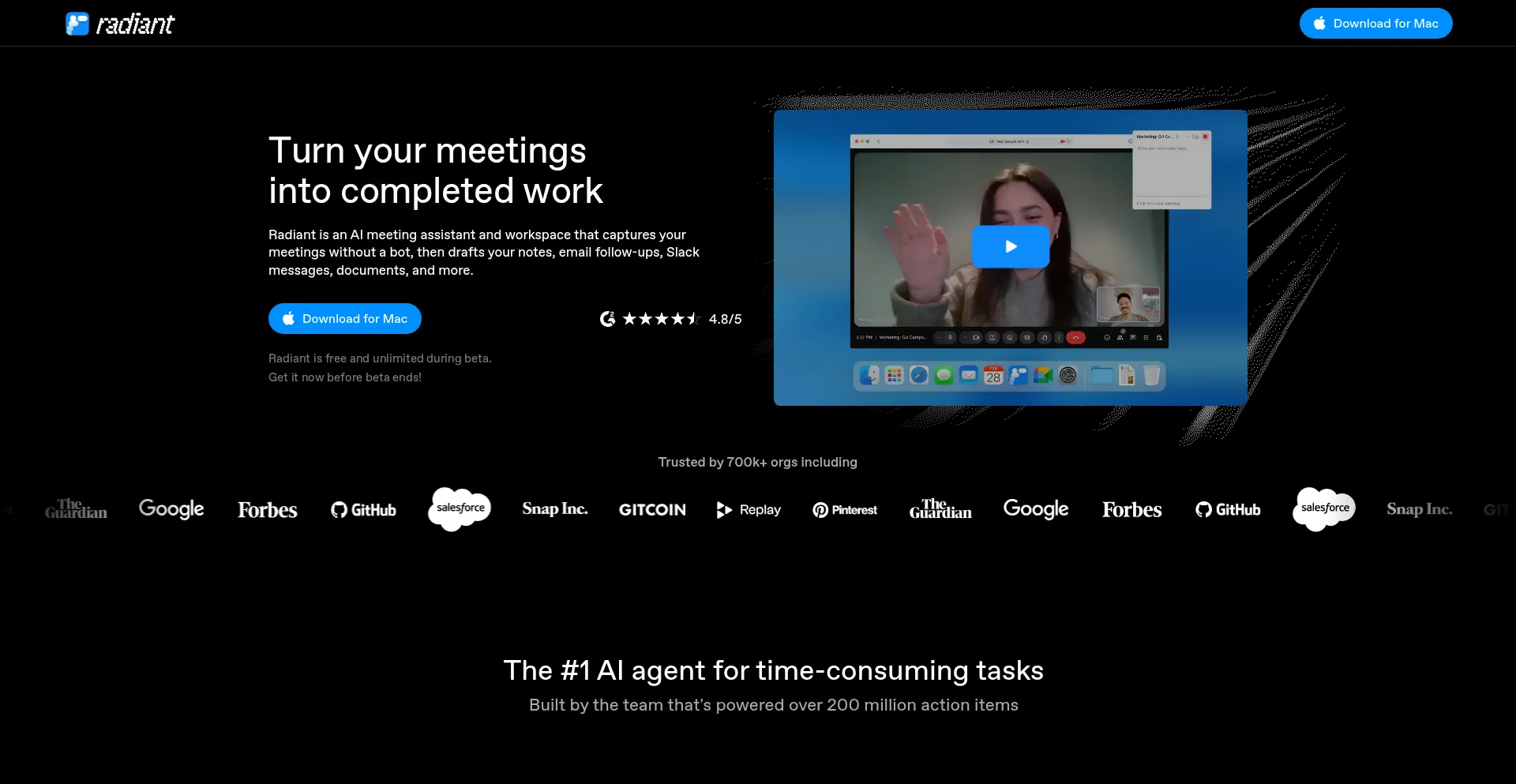 AI meeting assistant and workspace app | Radiant