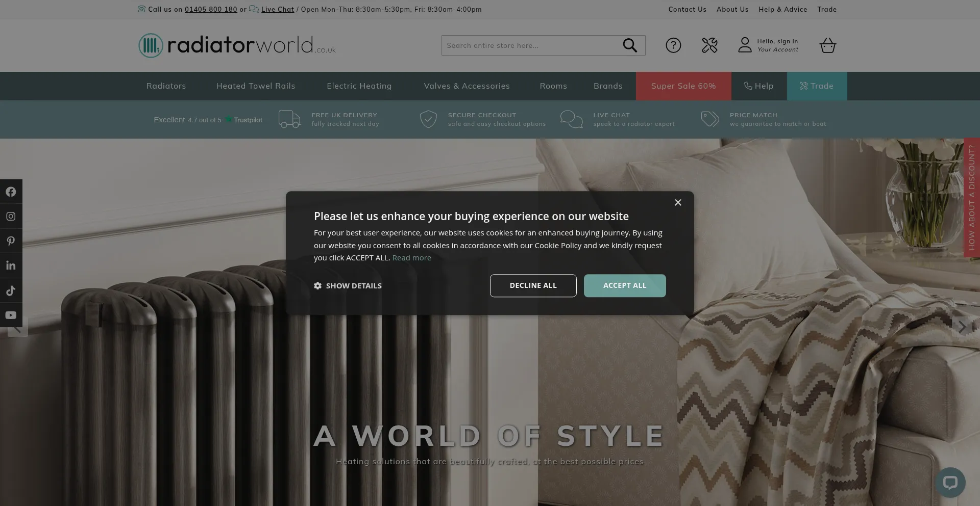 该网站实现符合GDPR或CCPA等隐私法规的cookie同意机制。这表明 radiatorworld.co.uk 遵守数据保护标准并为用户提供对个人数据收集实践的控制。