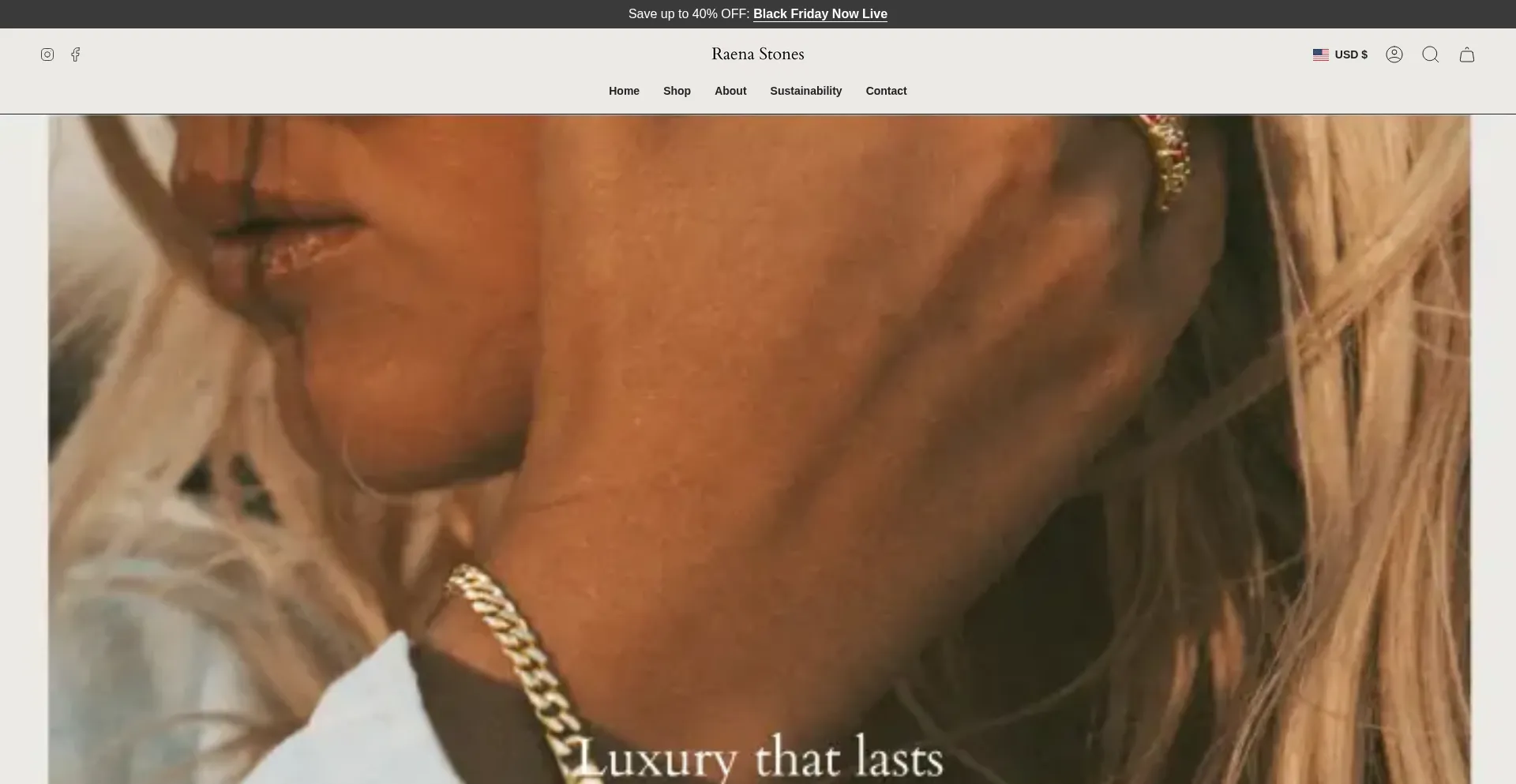 网站上存在社交媒体链接表明 raenastones.com 在社交媒体上维护官方账户,这是可信度和参与度的积极信号。