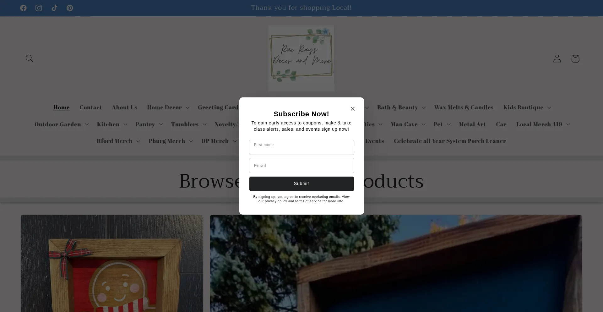 A brick-and-mortar retail store made up of over 100 local Vendors! We have everything from home decor, bath & beauty, pantry items, outdoor decor, man cave, women's boutique and...