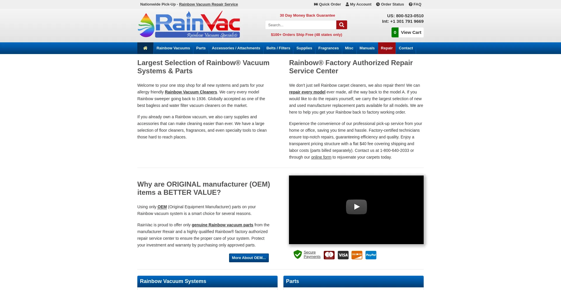 RainVac, an Exclusive Online Rexair Factory Authorized Company offering Parts, Accessories, Attachments, Schematics & Repair for your Rainbow Vacuum.