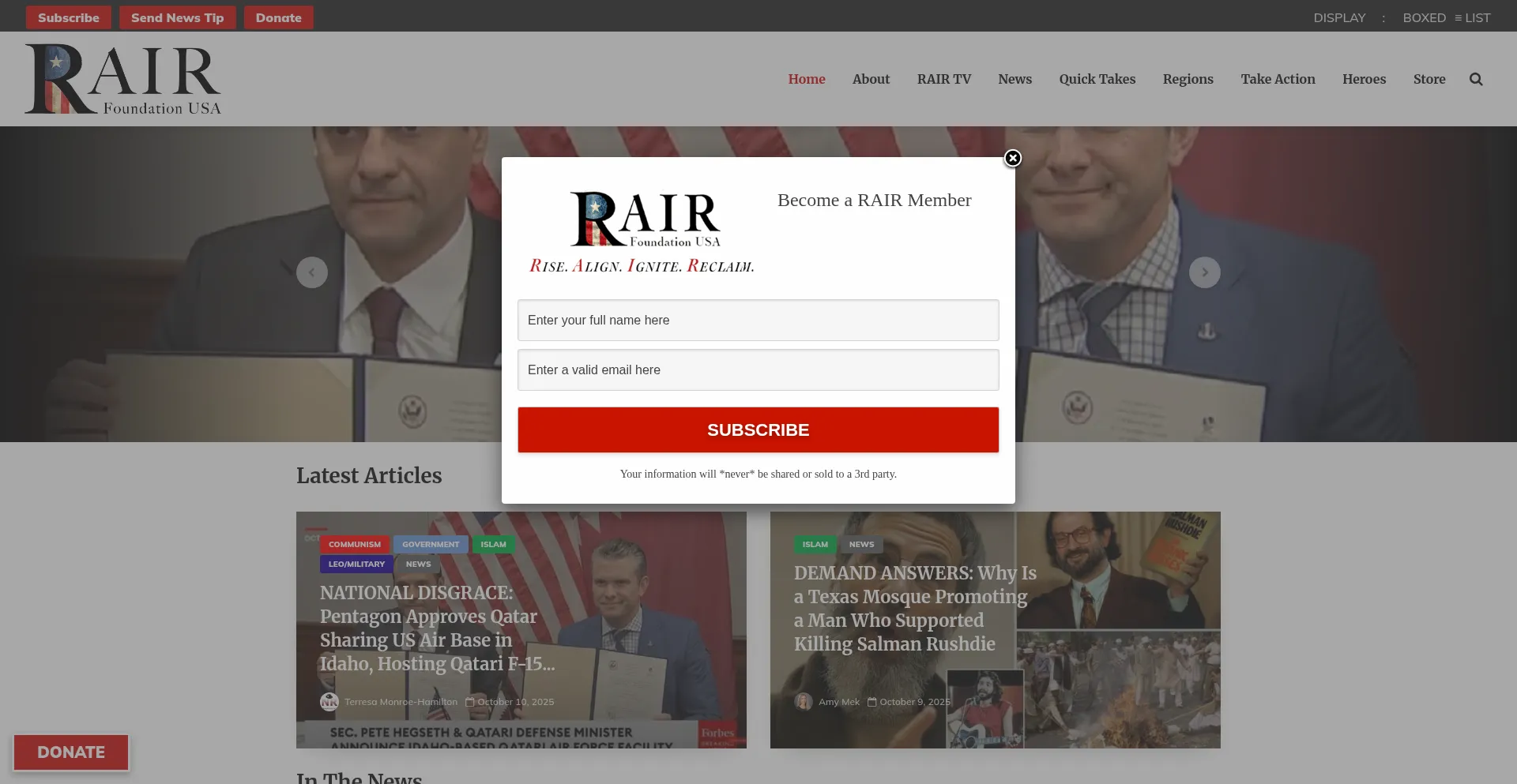 RAIR Foundation USA is a grassroots, activist and investigative organization comprised of everyday Americans leading a movement to reclaim our Republic from the network of indiv...