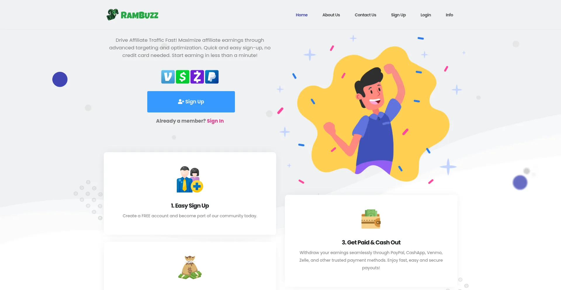Rambuzz.com 是一个诈骗网站,虚假声称用户可以通过分享推荐链接"通过Facebook、Instagram、SnapChat、Twitter赚钱"。实际上,它旨在通过欺骗性承诺窃取金钱。
