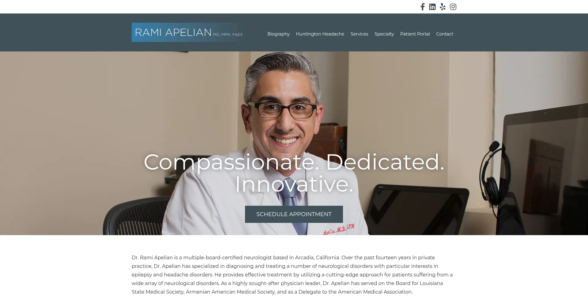 网站上存在社交媒体链接表明 ramiapelianmd.com 在社交媒体上维护官方账户,这是可信度和参与度的积极信号。