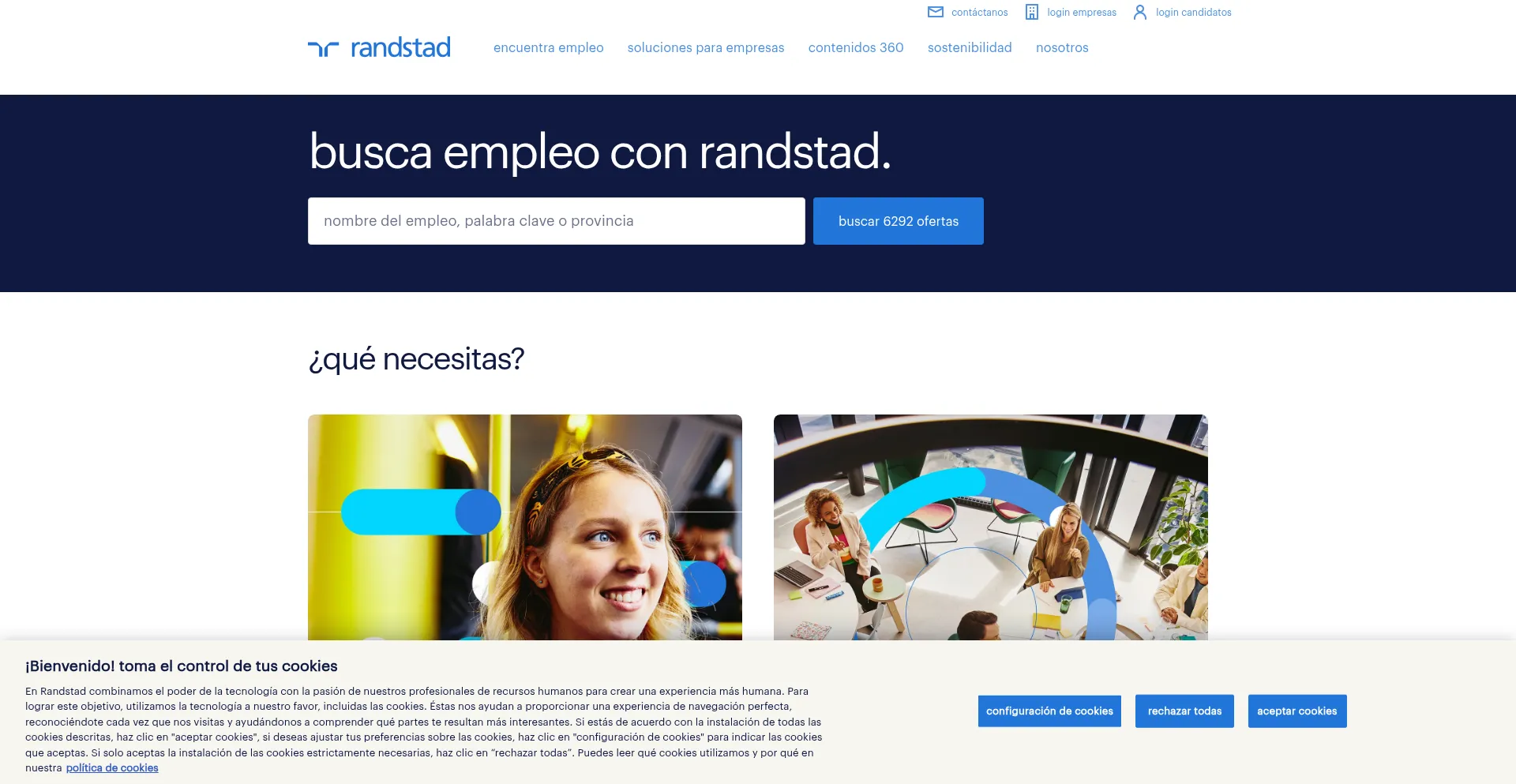 该网站实现符合GDPR或CCPA等隐私法规的cookie同意机制。这表明 randstad.es 遵守数据保护标准并为用户提供对个人数据收集实践的控制。