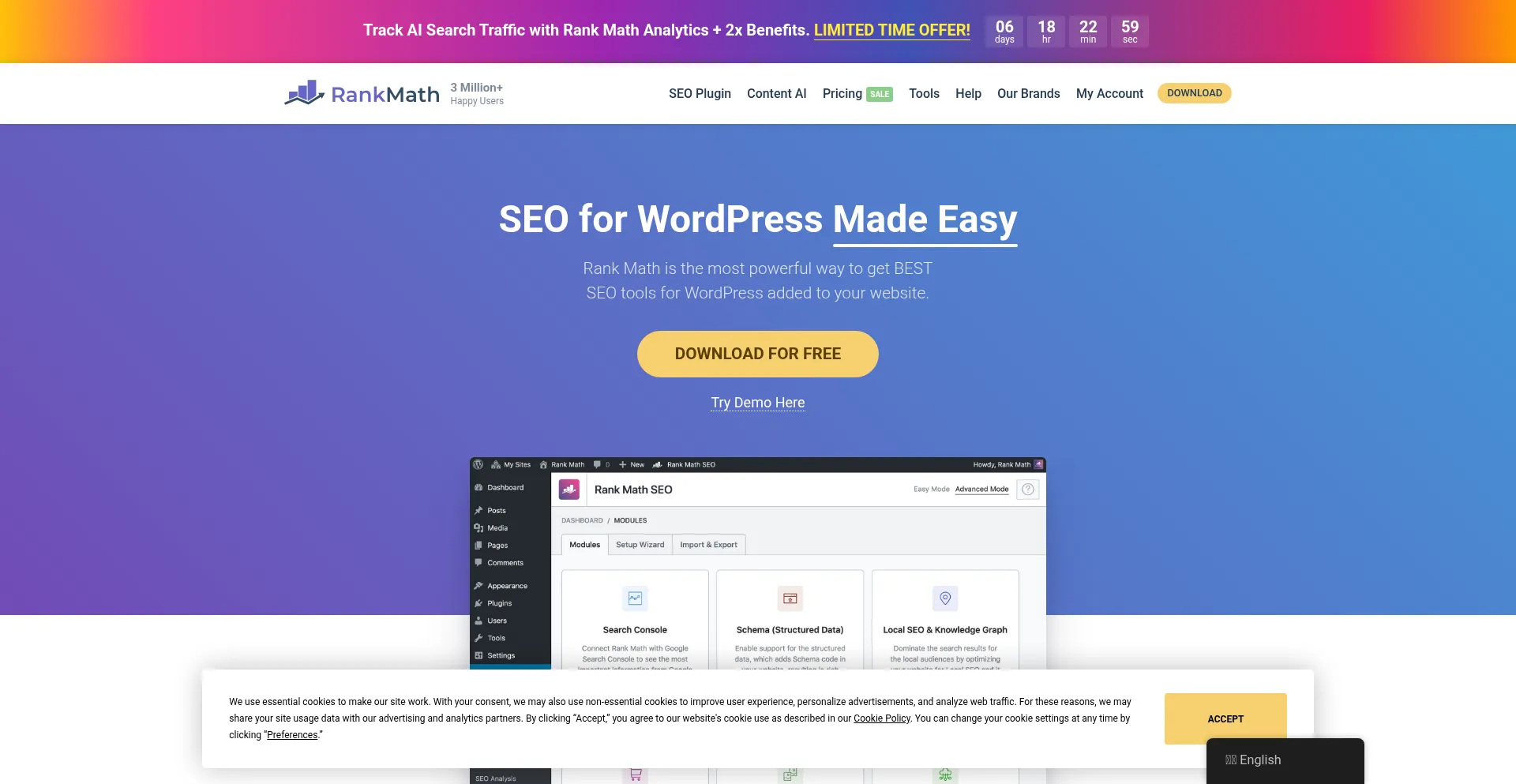 Rank Math WordPress SEO plugin will help you rank higher in search engines. DOWNLOAD for FREE this plugin today to optimize your WordPress website for higher rankings and more t...