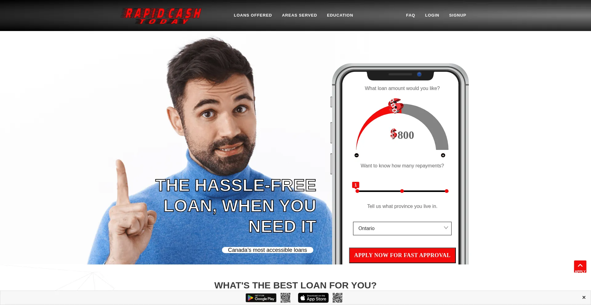 rapidcashtoday.ca 提供 Android 设备移动应用程序,表明平台存在已扩展到网络服务之外。