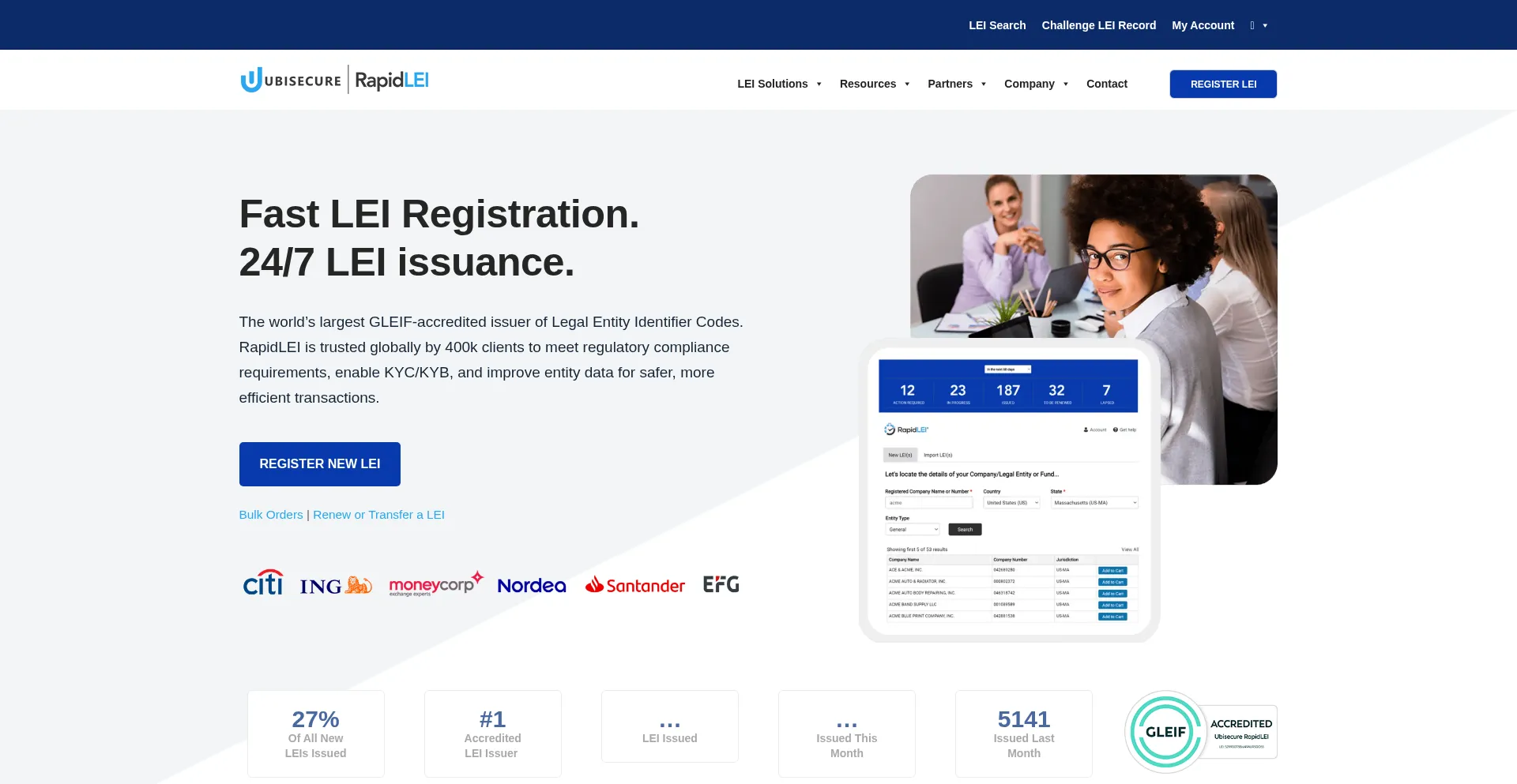 RapidLEI - the largest GLEIF-accredited global Legal Entity Identifier (LEI) Issuer with over 400k clients. Best LEI Code registration in just minutes.