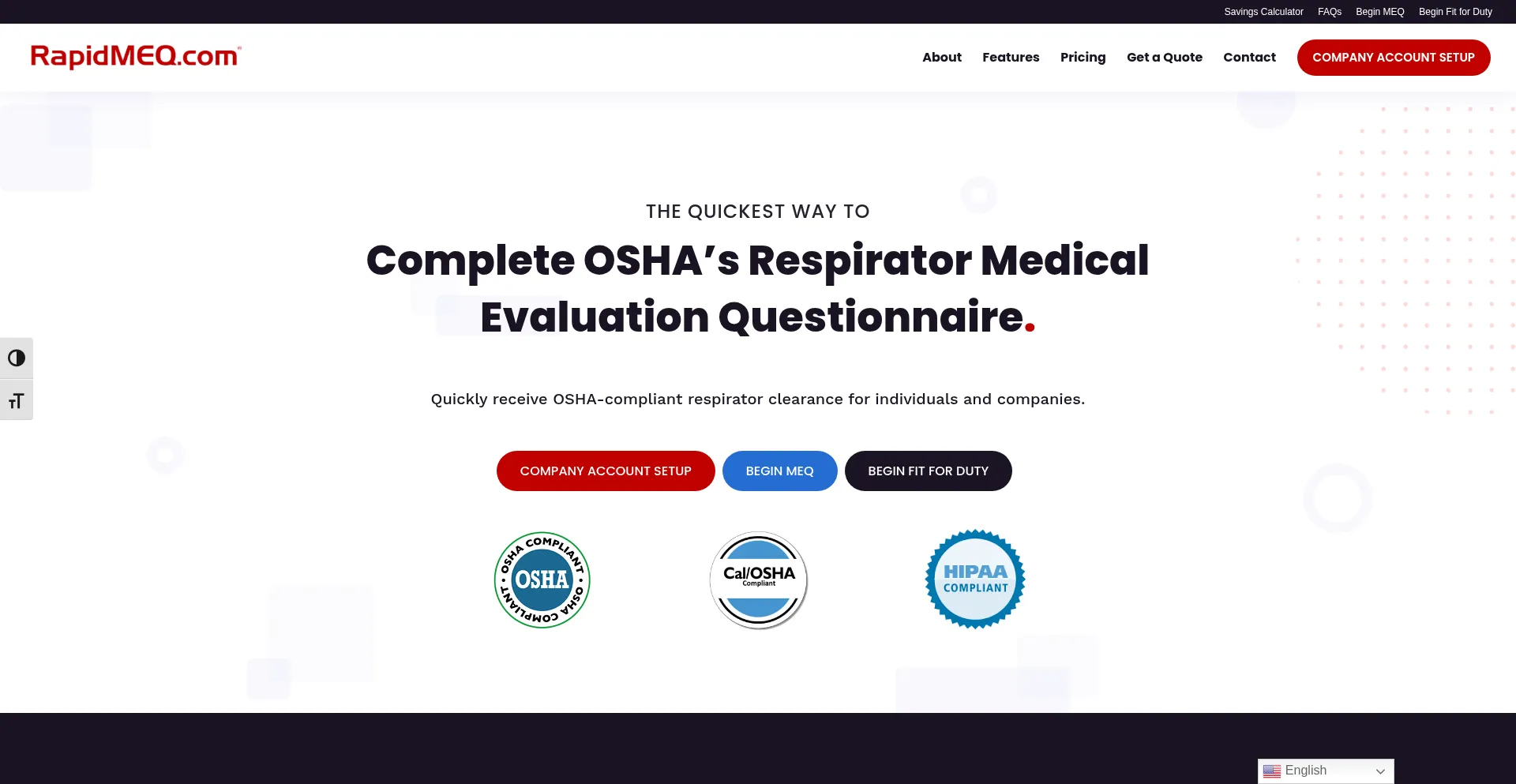 Get fast, OSHA-compliant respirator medical evaluations with RapidMEQ®. Quick and easy online clearance for individuals and companies. Start today!